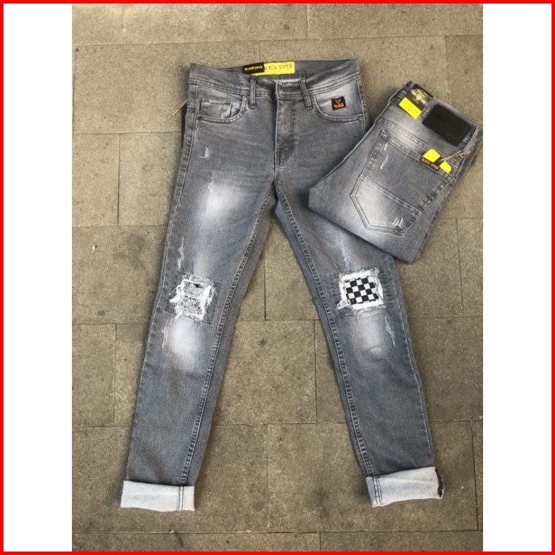 Celana Jeans Panjang Pria Celana Sobek Bikers Celana Ripped Jeans