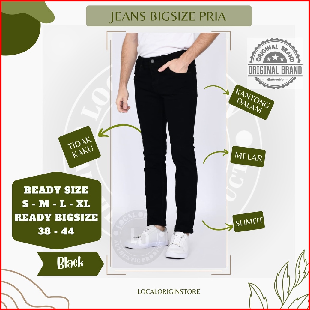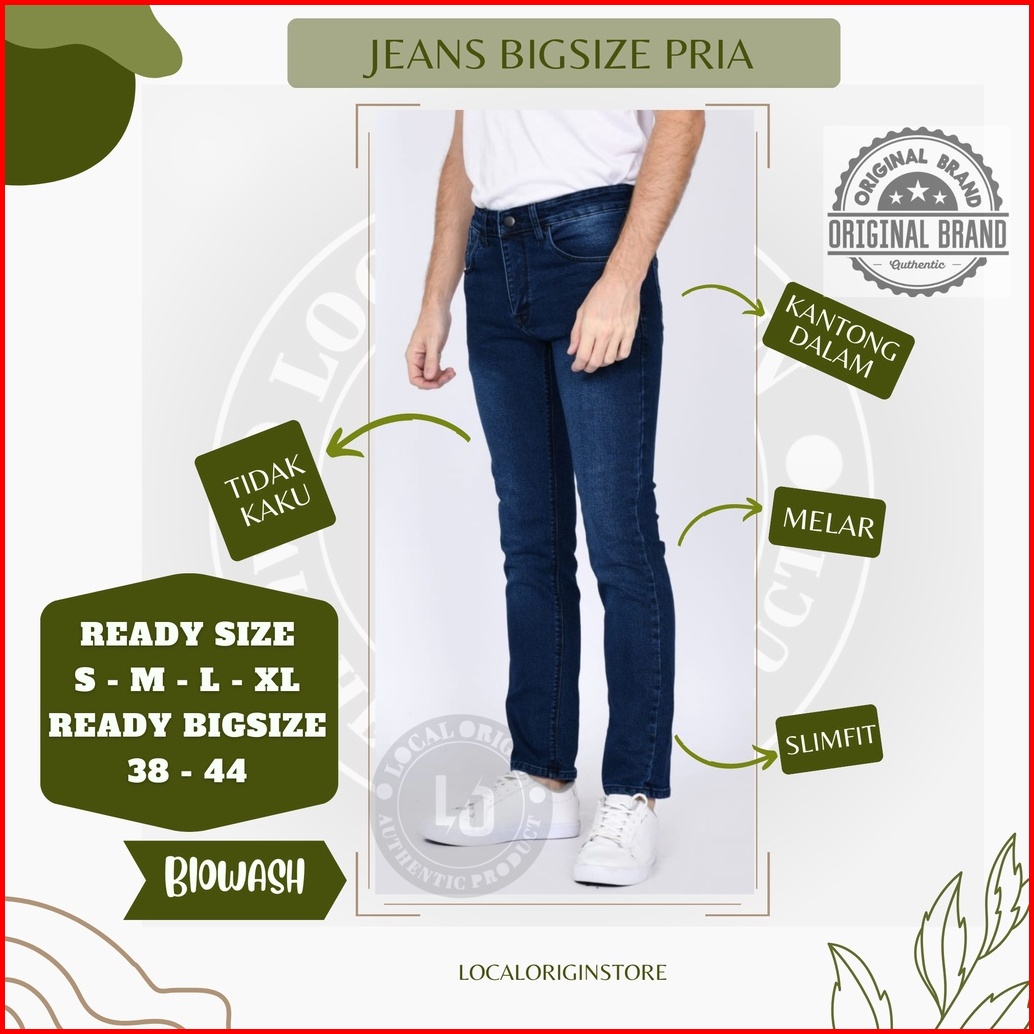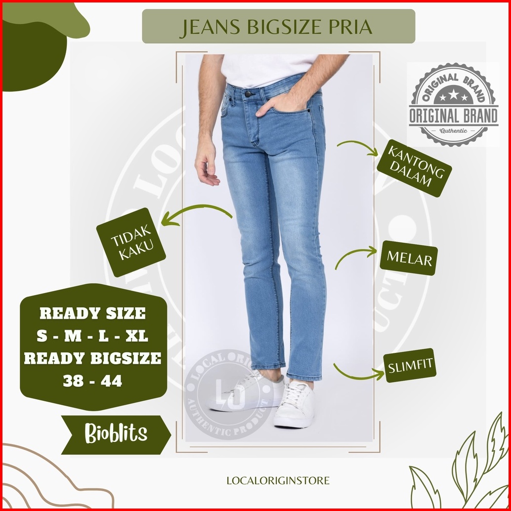 Celana Jeans Stretch Big Size Panjang Pria Jumbo 36-44 Celana Denim Celana Lev.s