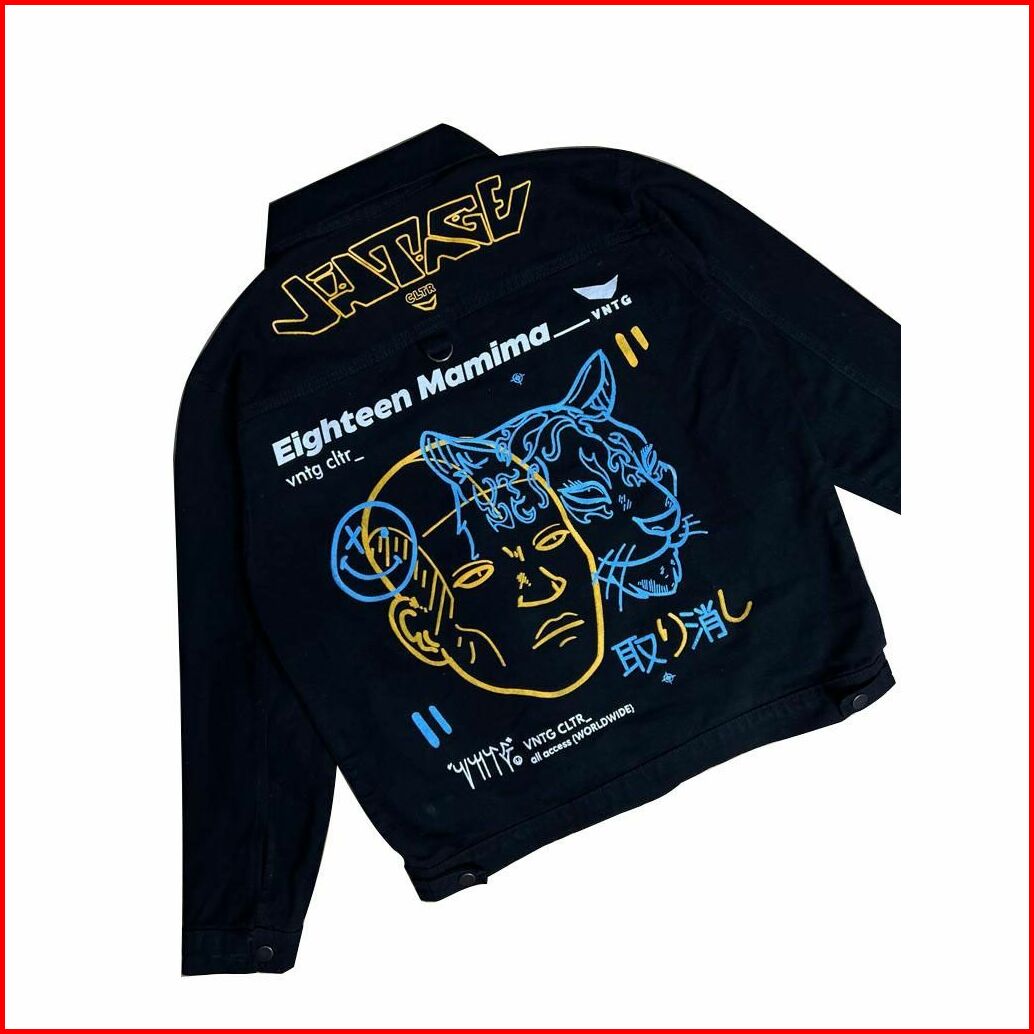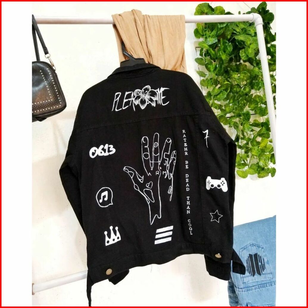 Jacket Jeans Casual Pria Model Baru Swag Hitam Pekat Sobek Kekinian Eblem Bordiran Printing
