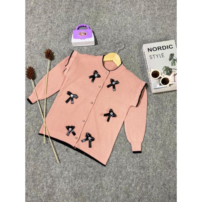 Poppy Cardigan Rajut 1-12 Tahun Pita Couple Ibu Anak Perempuan Outer Wanita (Harga Terpisah)