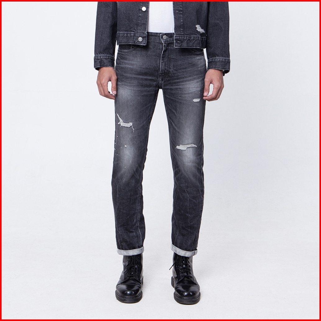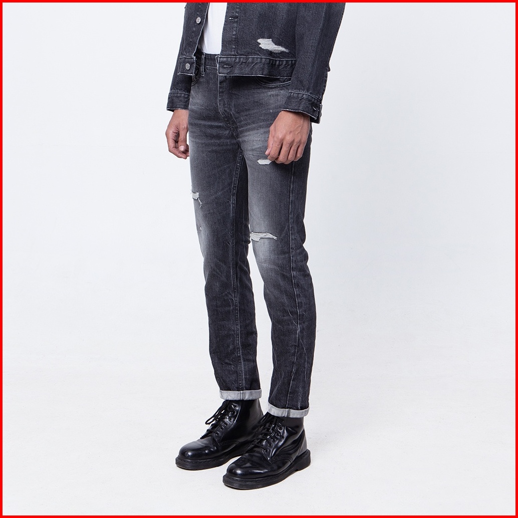 802 Slim Fit Handcrafted Jeans Black Perforated - Celana Panjang Denim Pria Edwin Jeans