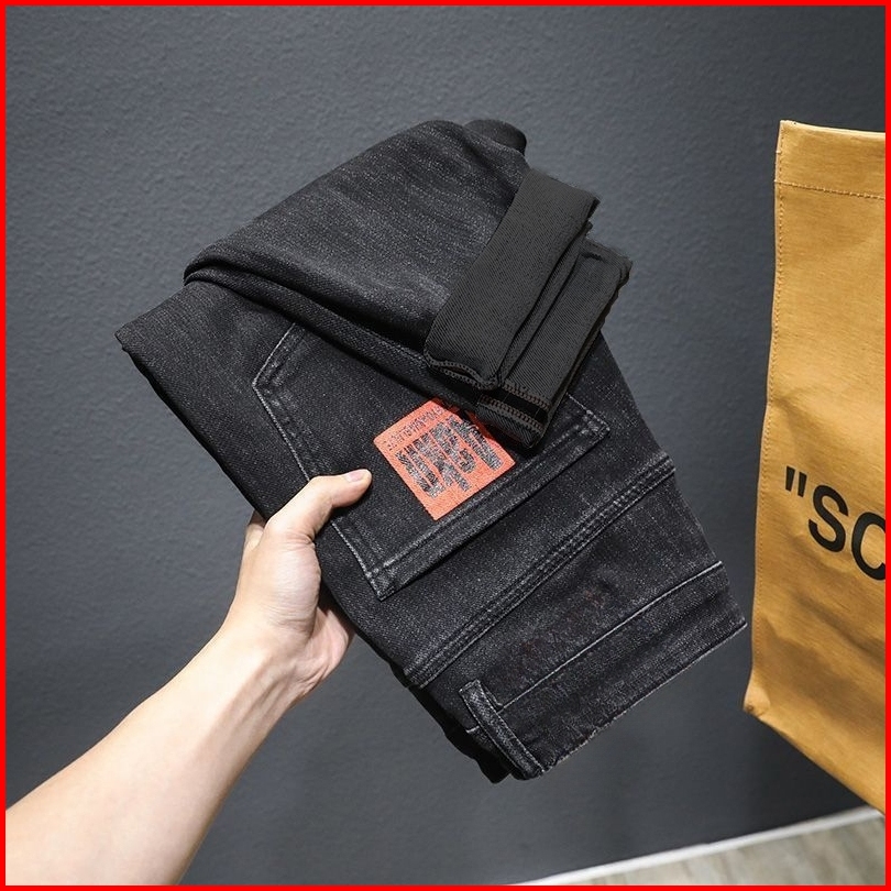 Celana Jeans Pria Slim Fit Stretch Reguler Tebal Korean Style Jeans Skinny Denim Selvedge Celana Hitam Pensil Pants Cela