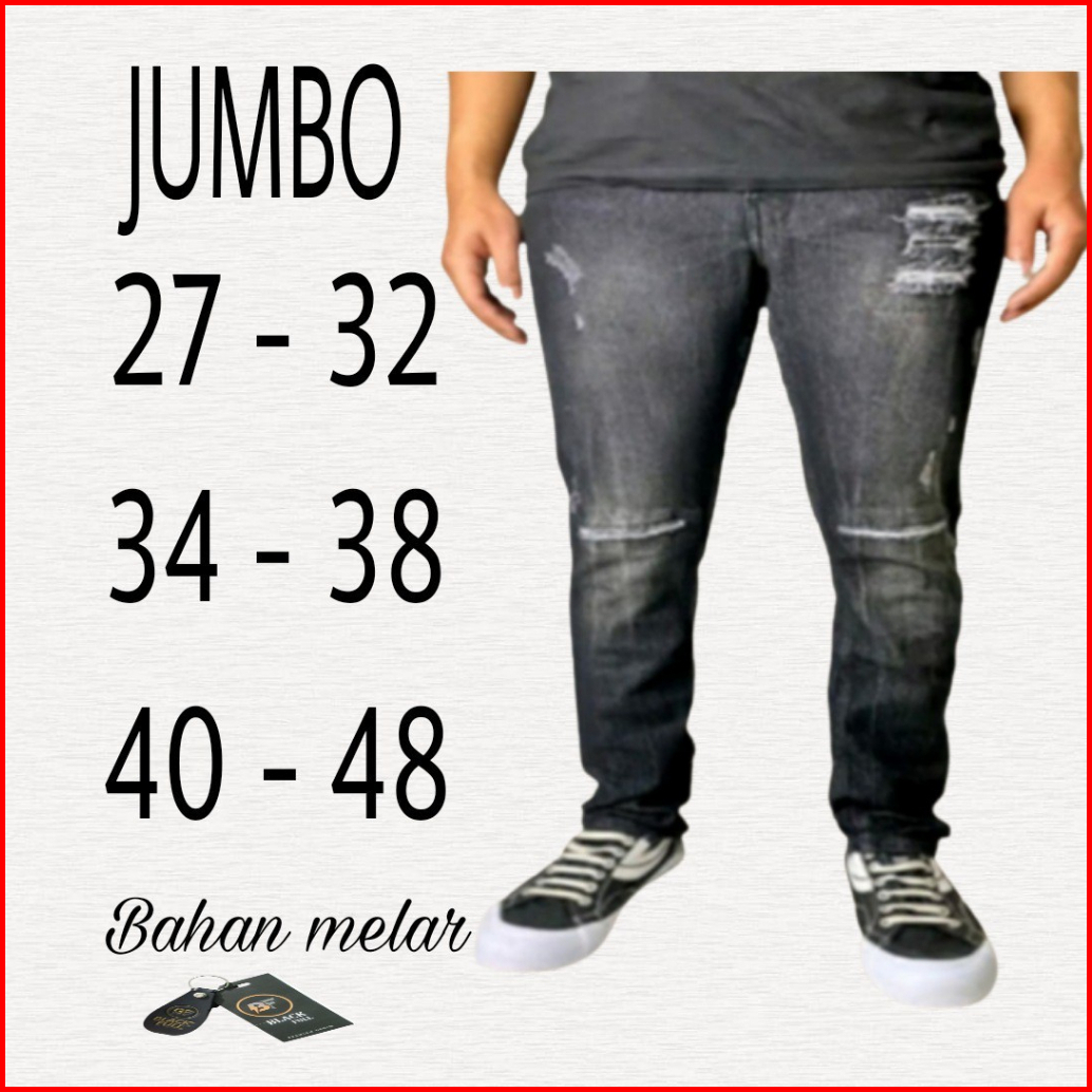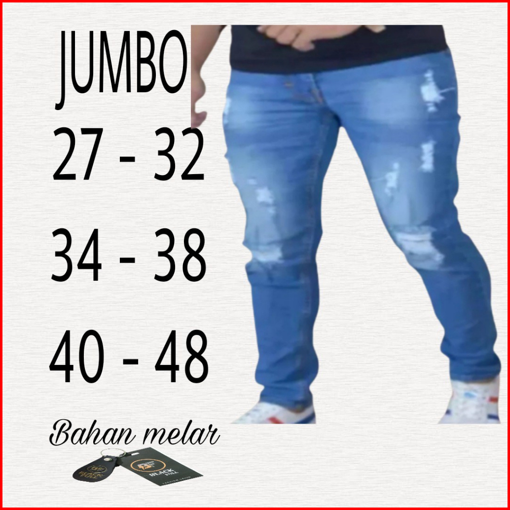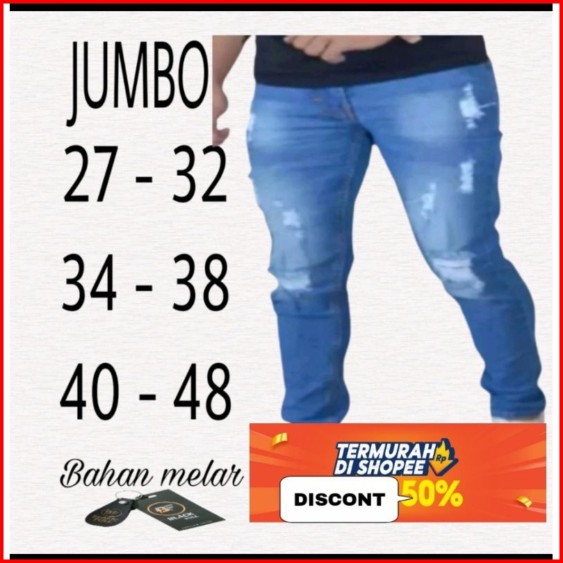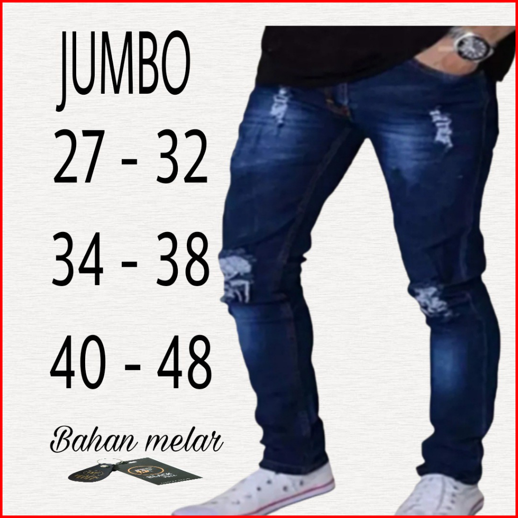 Blackfull-celana Jeans Pria Sobek Sobek Bigsize 27-48 Bahan Jeans Street Melar Jeans Jumbo Slimfit Skinny