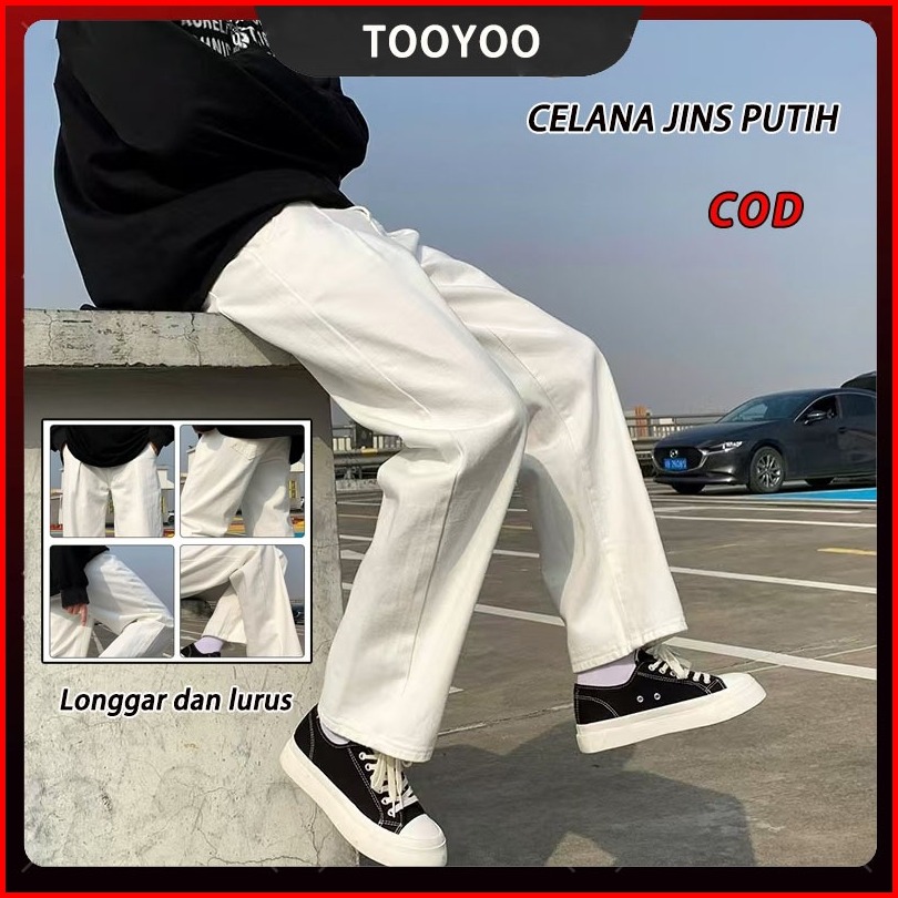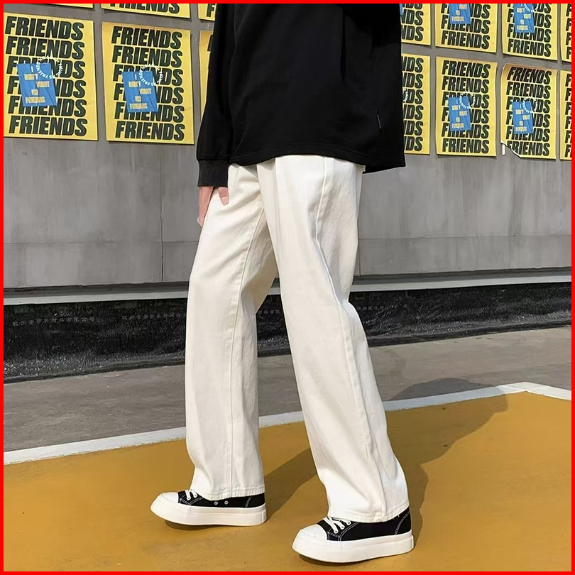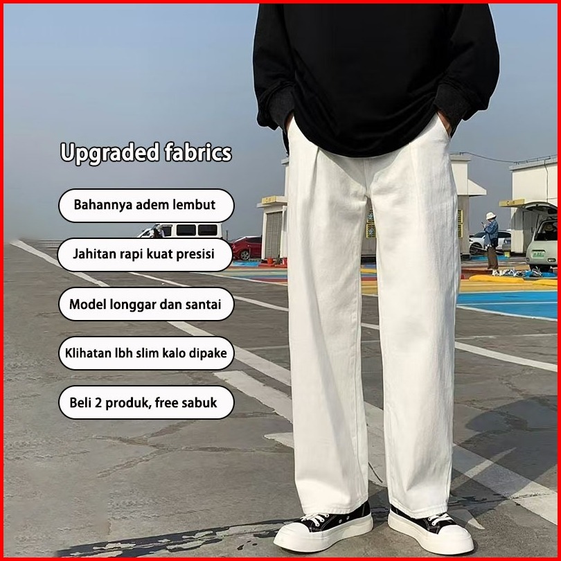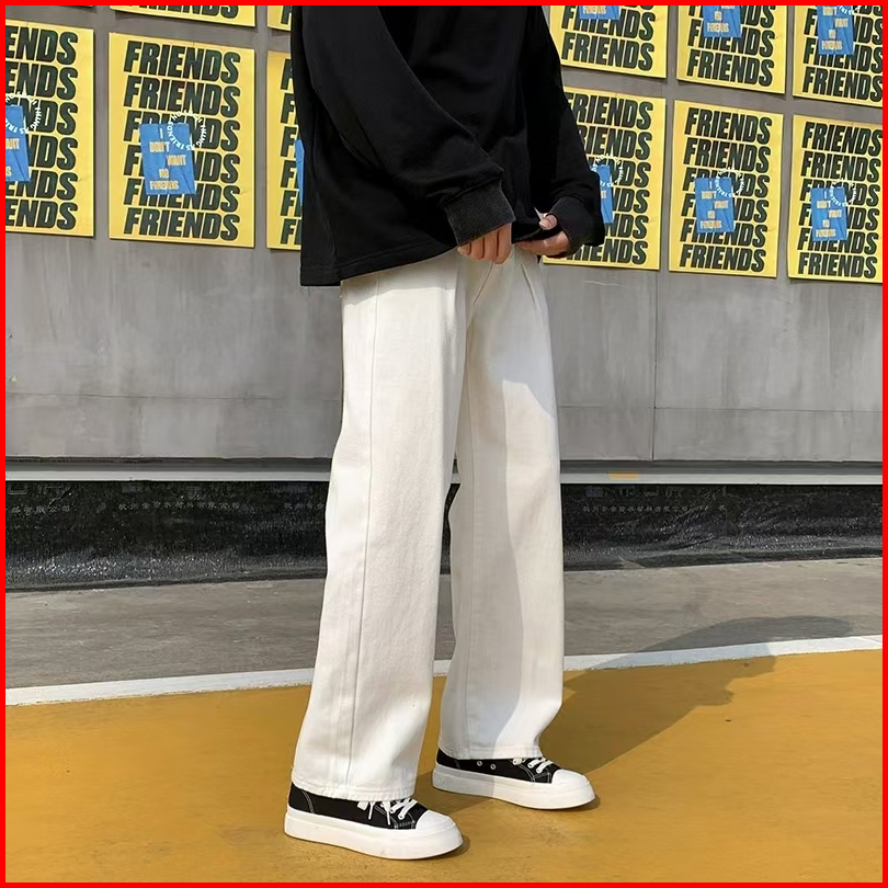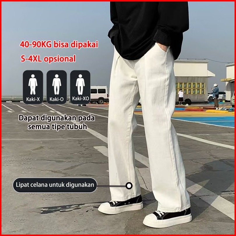 Celana Jeans Pria Korean Style Celana Jeans Putih Celana Panjang Pria Kulot Jeans Baggy Pants Oversize Boyfriend Jeans L