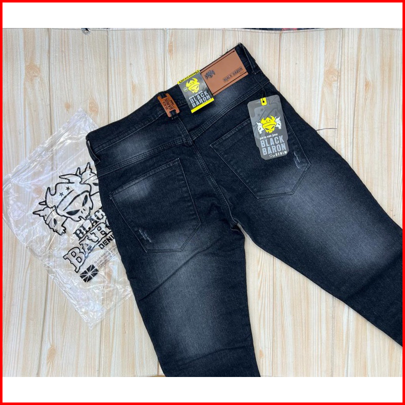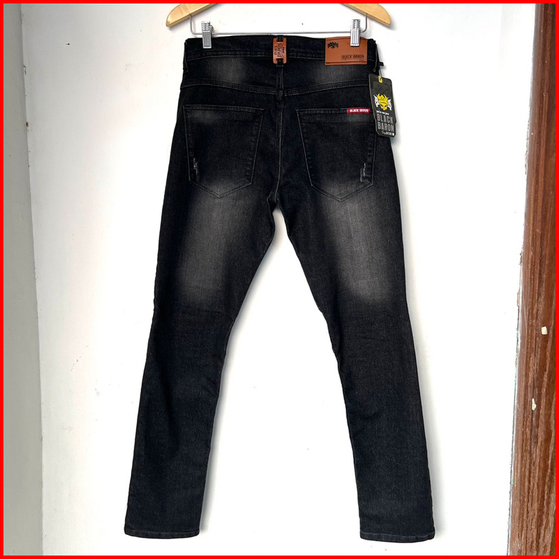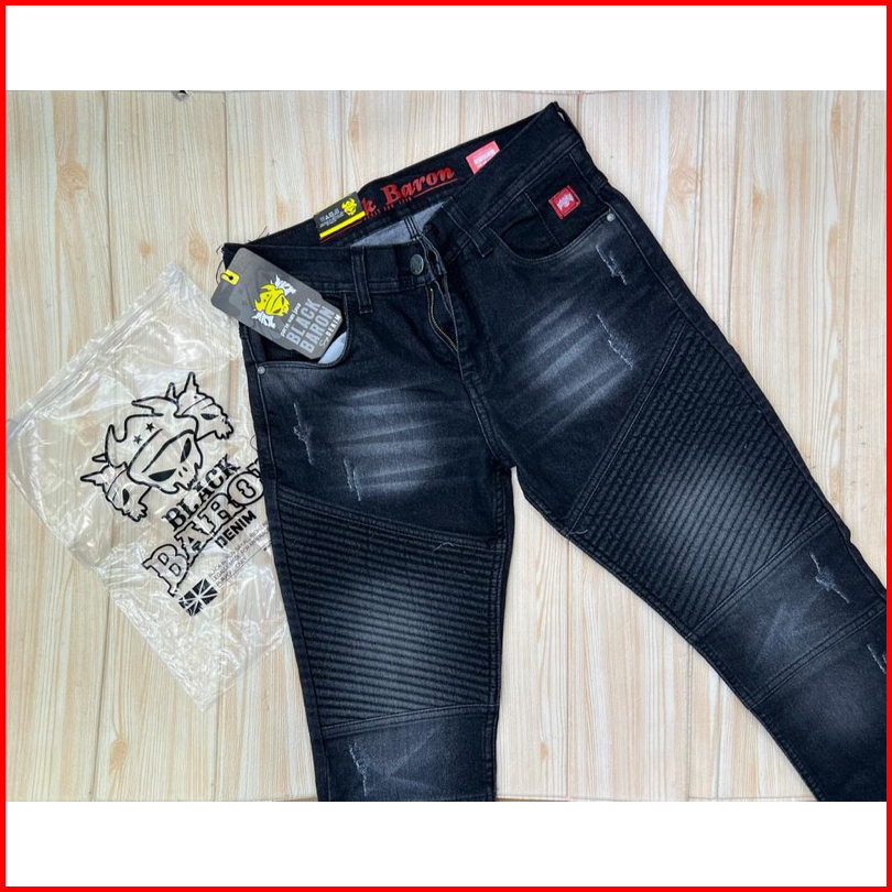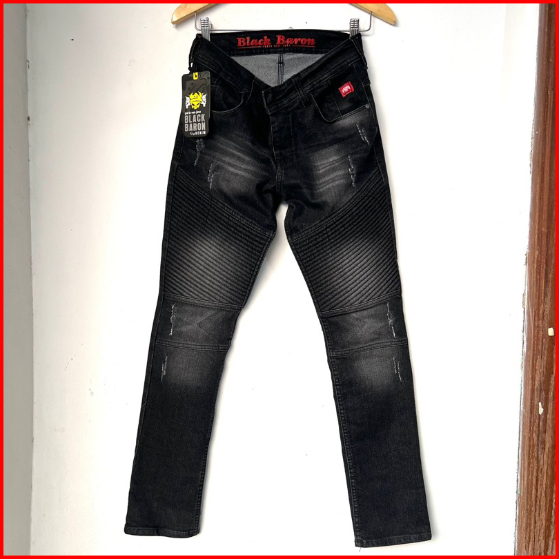 Celana Jeans Pria Sobek Lutut Black Baron Biker Ripped Black Jazz Korean Style Original Slim Fit Strech Premium Denim Te