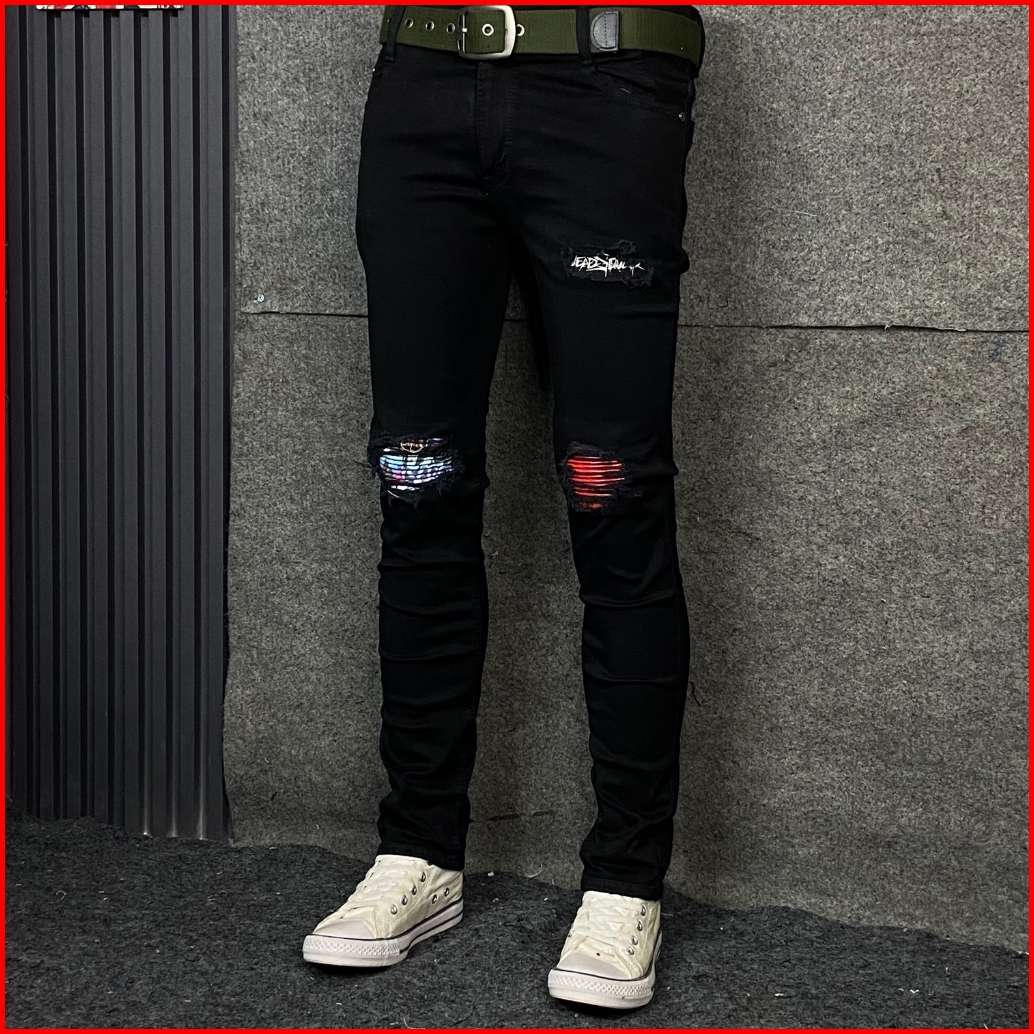 Celana Jeans Pria Sobek Lutut Jeans Ripped Pria Celana Jeans Sobek Cowok Slim Fit