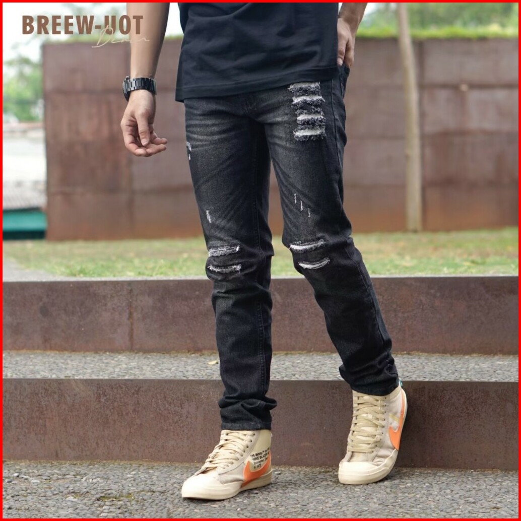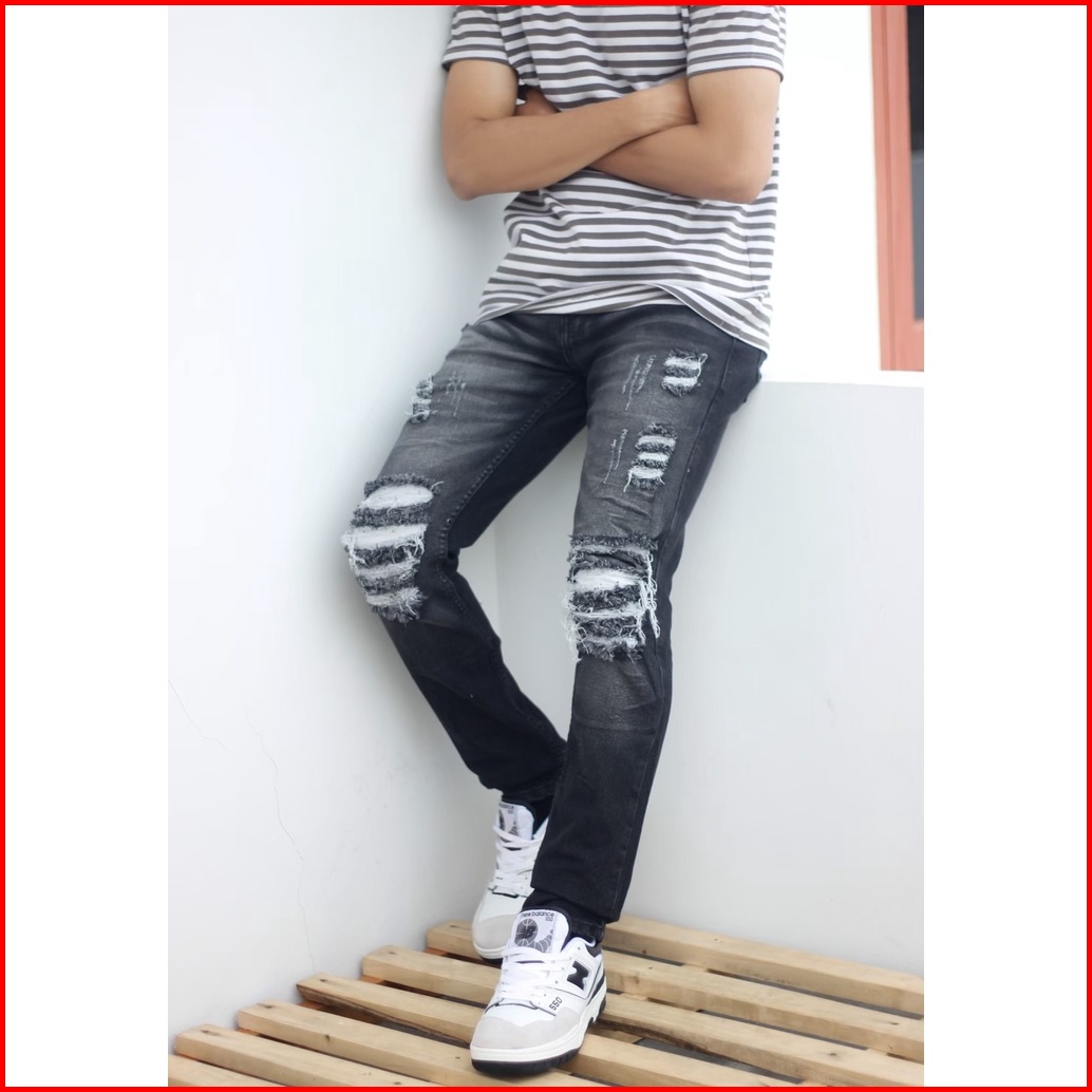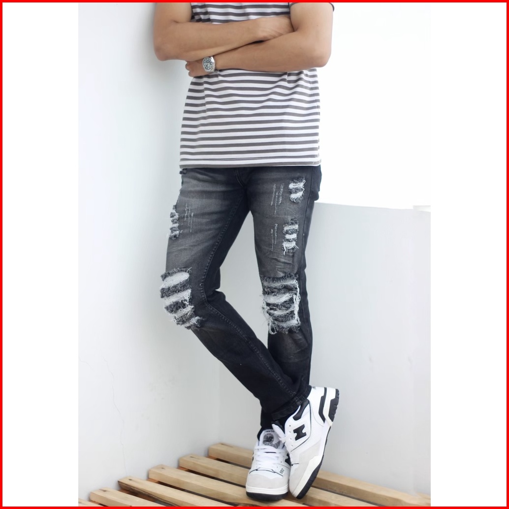 Gevar Celana Jeans Ripped Sobek Tidak Tembus