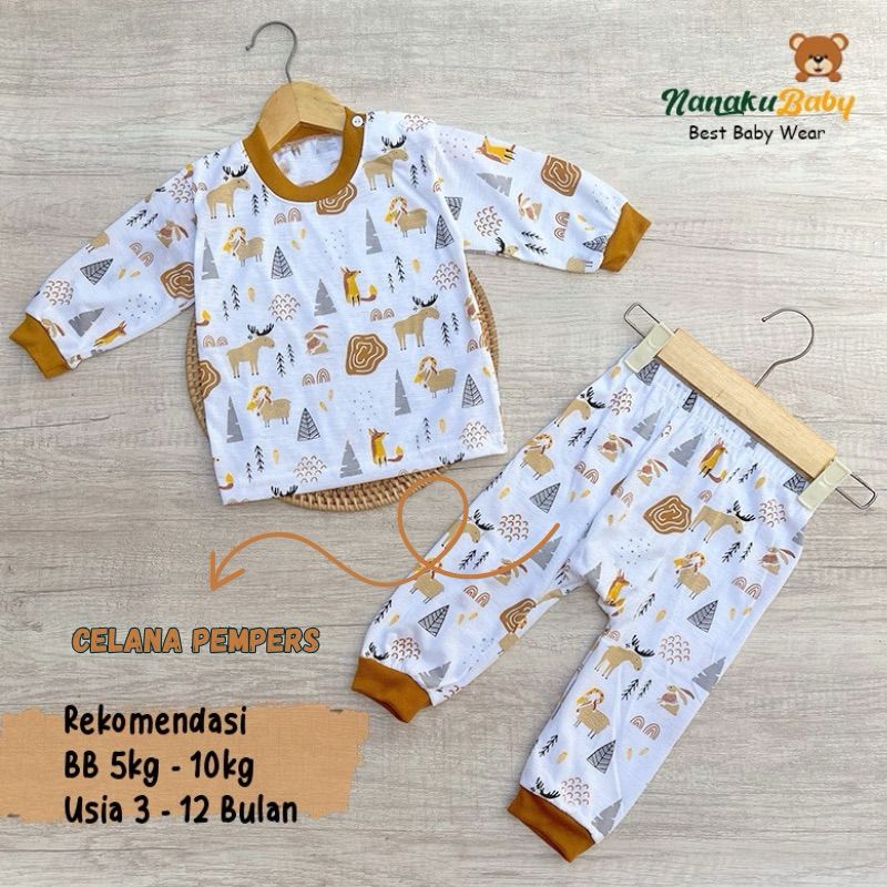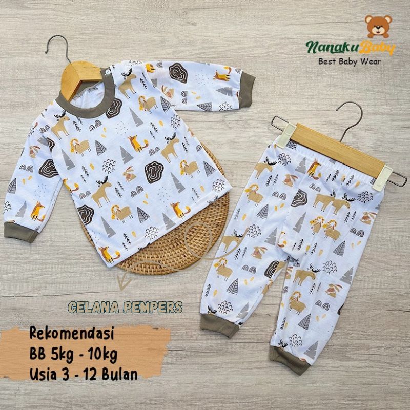 Nanaku Baby Setelan Baju Bayi Unisex Model Lengan Panjang Celana Pempers Panjang Usia 3-12 Bulan Motif Rusa