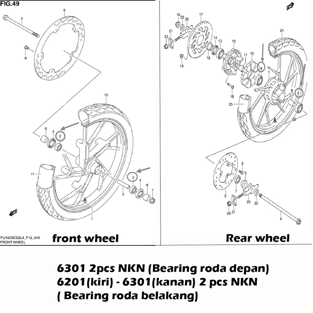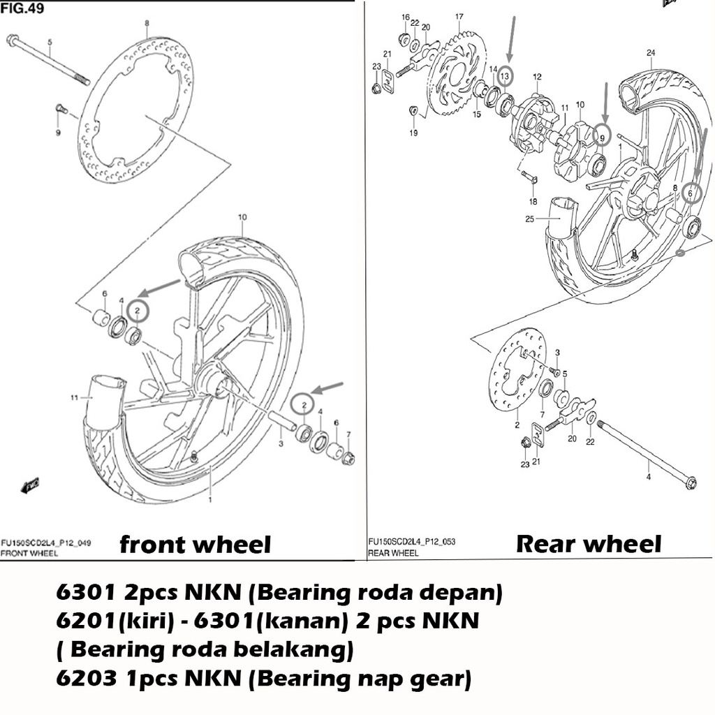 Bearing laher roda depan dan belakang Satria Fu & Bearing laher roda depan belakang dan bearing gear Satria Fu