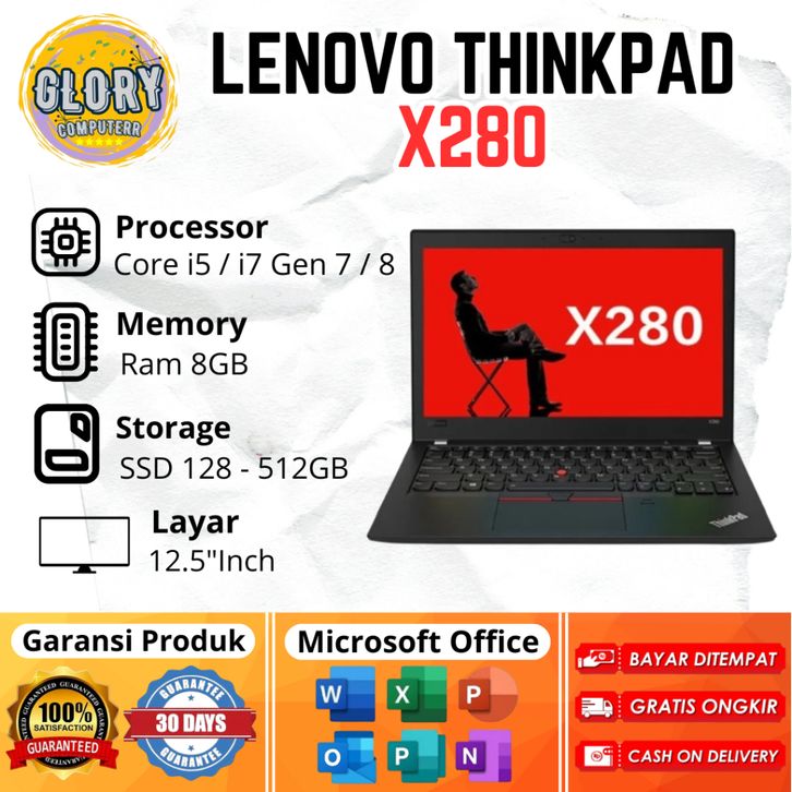 Lenovo Thinkpad X280 Core i5 / i7 Gen 7 / 8 Ram 8GB SSD 128GB / 256GB / 512GB, Layar 12.5"Inch Murah DISKON