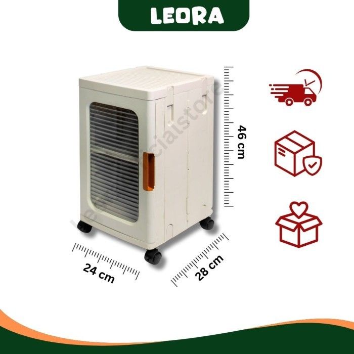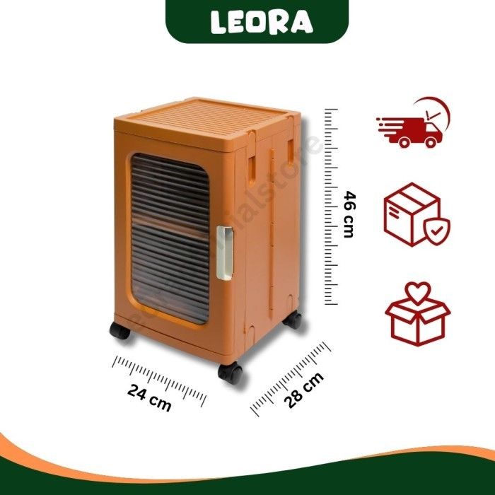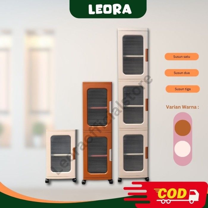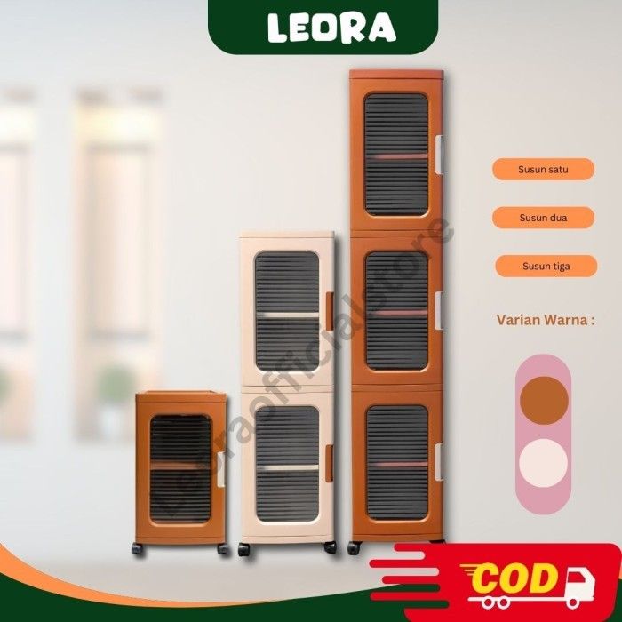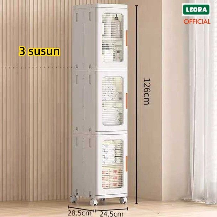 LEORA Lemari Lipat Pakaian Plastik Susun Transparan Serbaguna Pintu Dapur toilet kamar tidur Roda Furniture