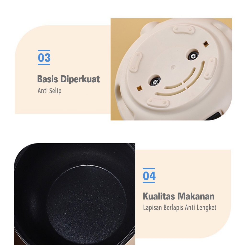 Rice Cooker Mini 1.5 Liter Penanak Nasi Serbaguna Panci Listrik Anti Lengket Coklat