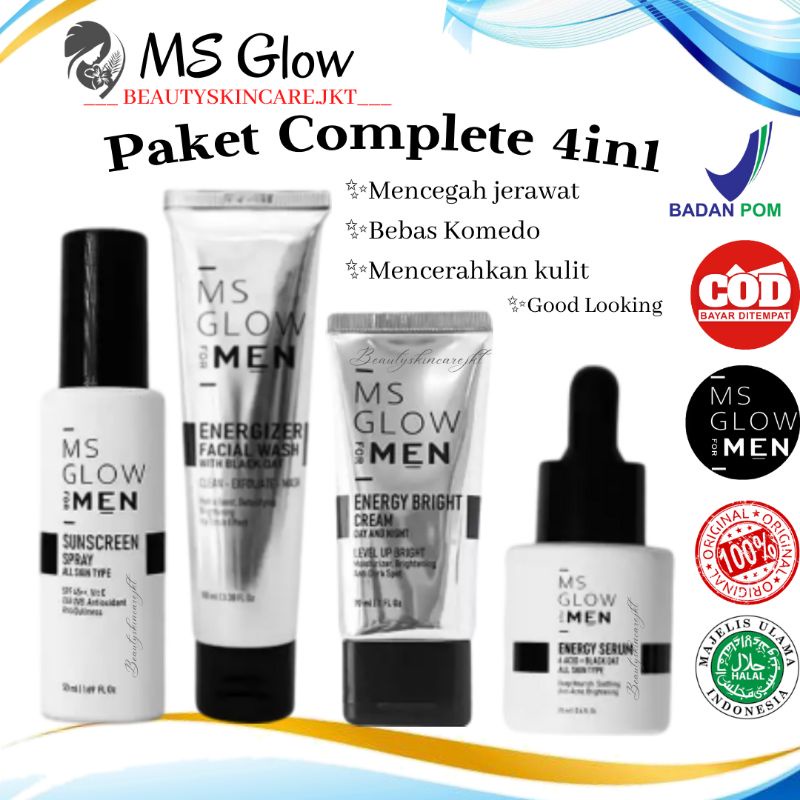 Ms Glow For Men Skincare Pria Paket Complete | Ms Glow For Men Paket Basic | Facial Wash For Men