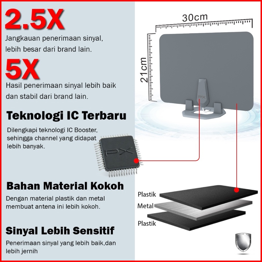 Ready Px Antena Tv Digital Indoor Outdoor Uda-3000a Uda 3000a Uda3000a Free Kabel Garansi Resmi