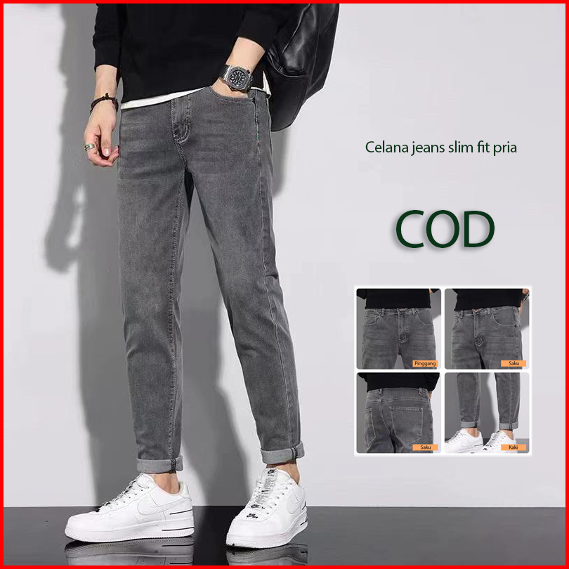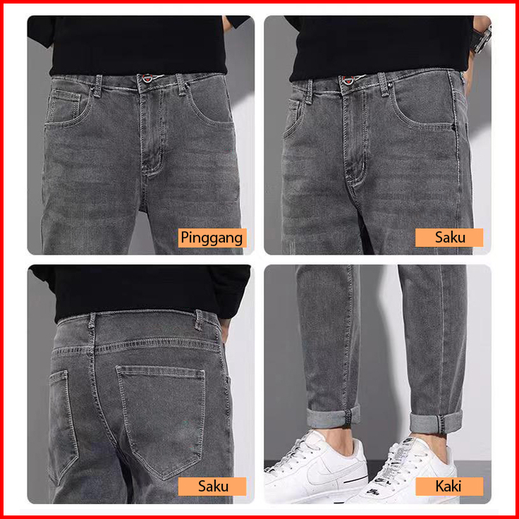 Celana Jeans Pria Slimfit Stretch Hitam Abu Jens Skinny Pensil Celana Denim Dewasa Laki Laki Panjang Cowok Korean Style