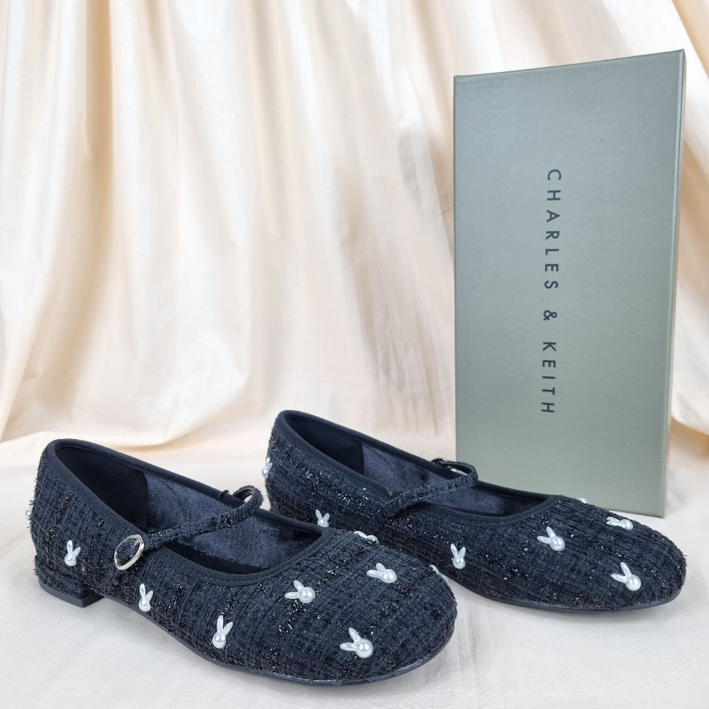 Sandal Sepatu Hills High Hils Heels Wanita Terbaru Charles and keith CK Bunny Tweed Original Terlaris Kondangan - HFZ