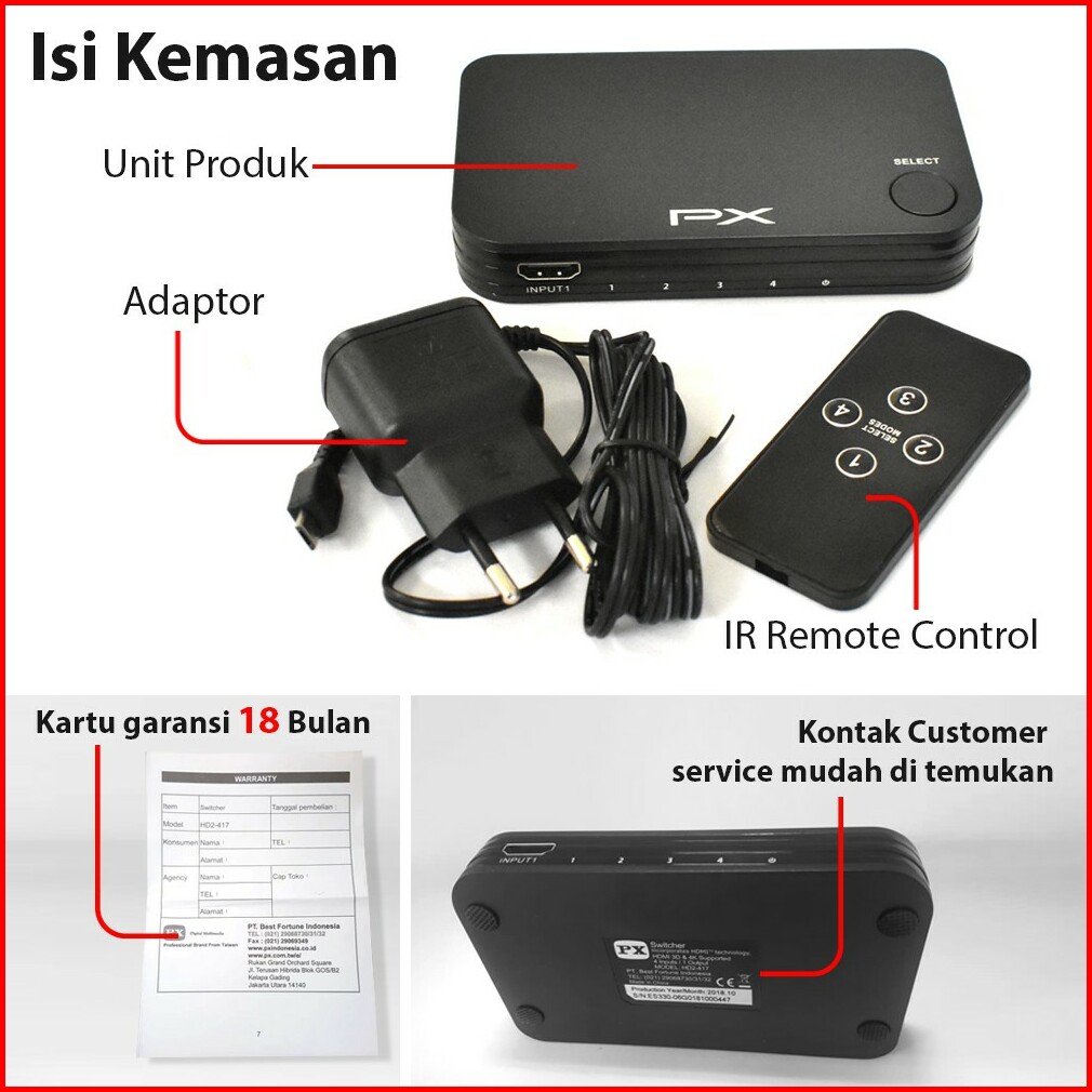 Switcher Hdmi 4 In 1 4k 3d Full Hd High Quality Px Hd2-417 Ir Remote Control