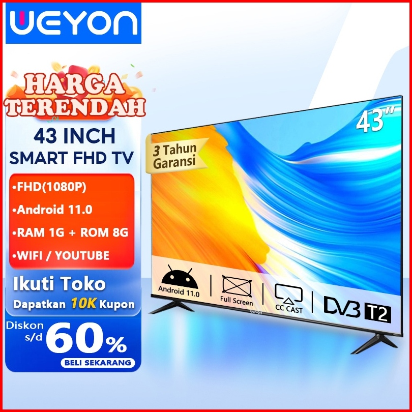 Weyon Sakura Smart Tv Led 32 40 43 Inch Tv Digital Android 11.0 Garansi 3 Tahun Televisi