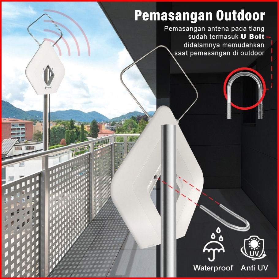 Antena Tv Digital Analog Indoor Outdoor Booster Kabel 12m Px Hda-2000