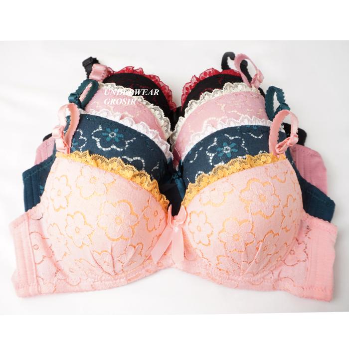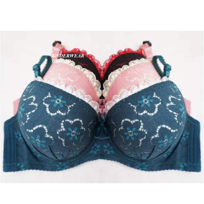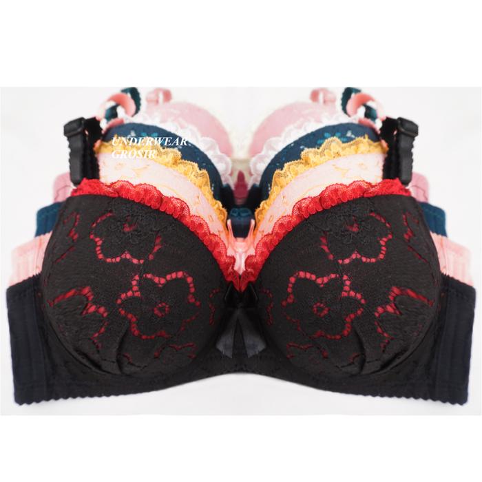 Promo 3 PCS BH Bra Kawat Push Up Busa Brukat Cantik Cup A Kait 3 Size 34 36 38 40