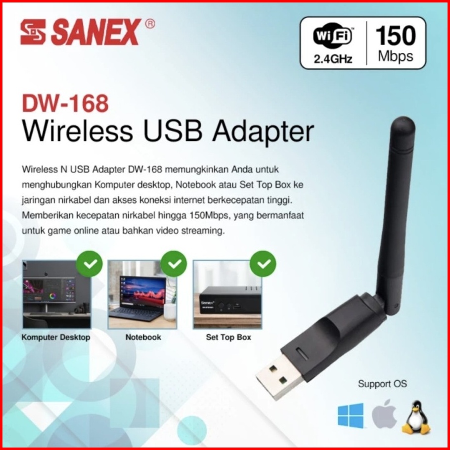 Usb Dongle Wireless Wifi Receiver Usb Adapter 150mbps Sanex Dw-168
