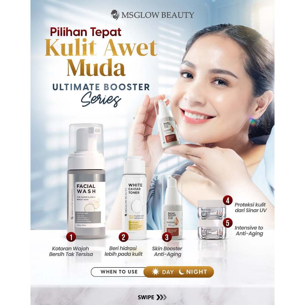 MS GLOW PAKET WAJAH BOOSTER WHITENING ACNE LUMINOUS ULTIMATE DNA FREE SERUM ELIXIR