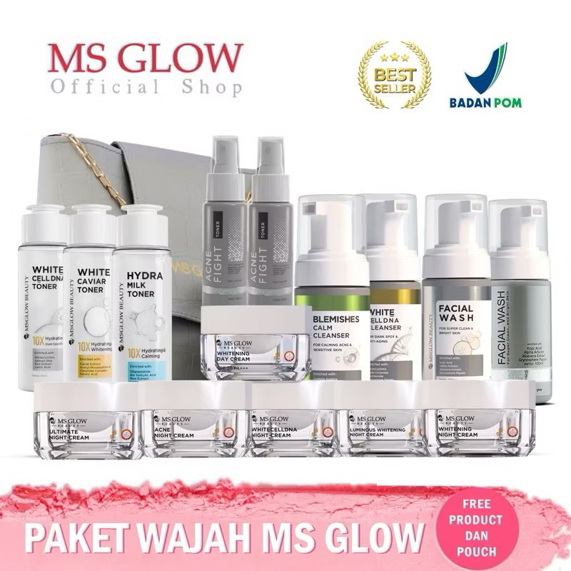 MS GLOW MENGATASI KULIT BERJERAWAT PAKET WAJAH FREE DTE ESSENCE MINI
