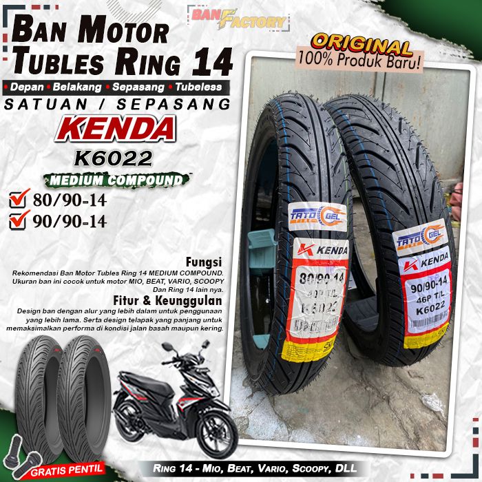 Ban Motor Ring 14 Tubeless Kenda K6022 Ring 14 Tubles Ban Motor Mio Beat Vario Scoopy Ring 14 Tubles