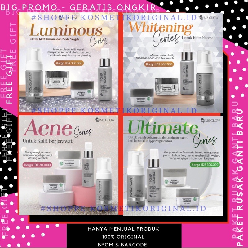 MS PAKET WHITENING, MS PAKET LUMINOUS, PAKET DNA, MS PAKET ACNE, MS PAKET ULTIMATE, PKT LUMI & PRODAY, PAKET WHITE & PRODAY, PAKET ULTIM & PRODAY, PKT ACNE & PRODAY, MS FACIAL WASH, LUMINOUS NIGHT CREAM, WHITENING NIGHTCREAM, ULTIMATE NIGHT CREAM, DNA NIGHT, ACNE NIGHT CREAM, Proday, MS GLOW DAY CREAM, RED JELLY MS GLOW, DTE MS GLOW, SERUM LUMINOUS, SERUM GOLD, SERUM ACNE, SERUM LIFTING, SERUM DNA, SERUM PEELING, JJ GLOW MS GLOW, TONER GLOWING, TONER ACNE, RADIANCE GOLD, MOIZ YUZU, MOIZ CACTUS, MOIS WATERMELON, DTE SALMON, Random gift, SUNWHITE, JJ GLOW, UNDER ARM, Spot treatmentrandom