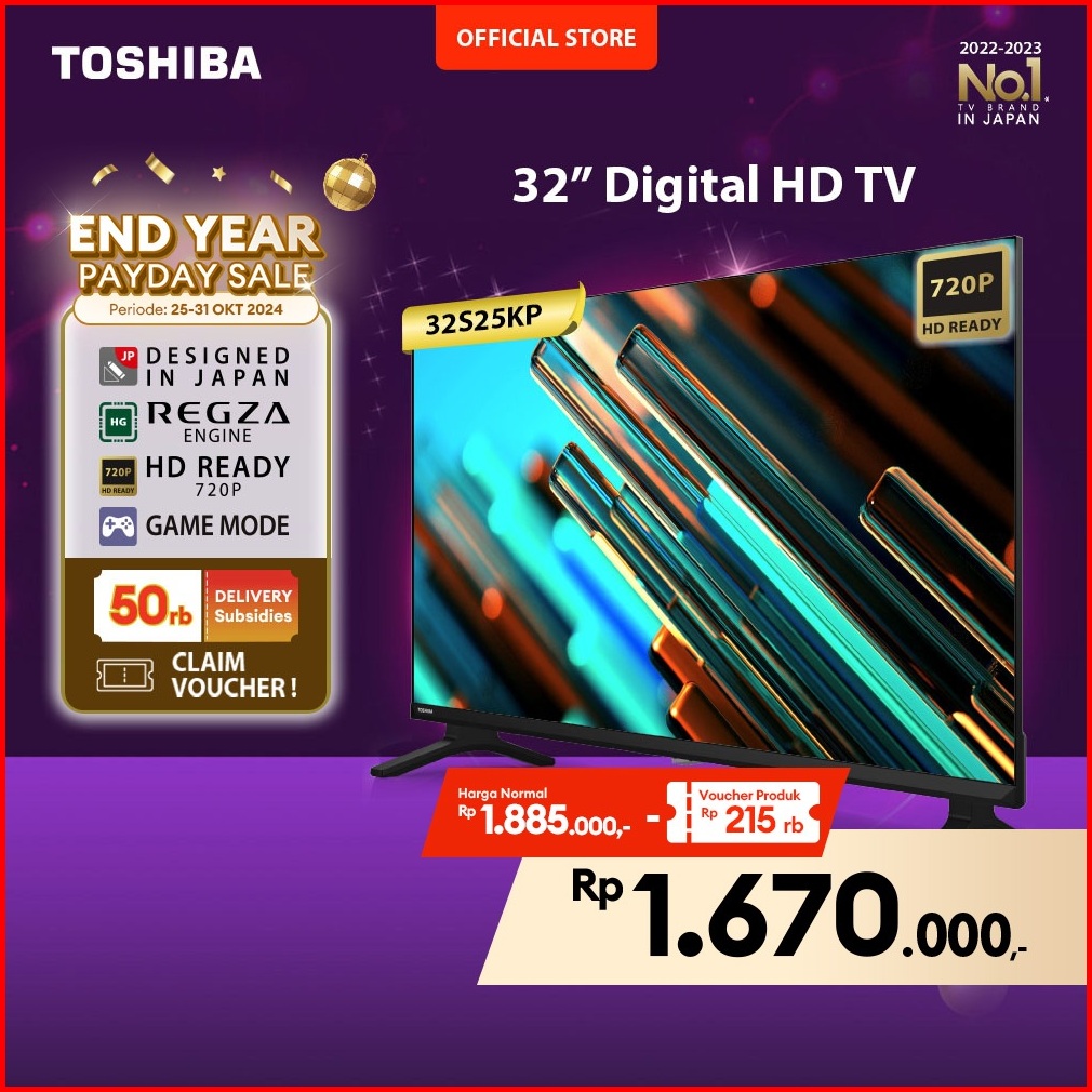 Toshiba Tv 32 Hd Digital Tv - Dolby Audio Regza Game Mode Hdmi Usb - 32s25kp