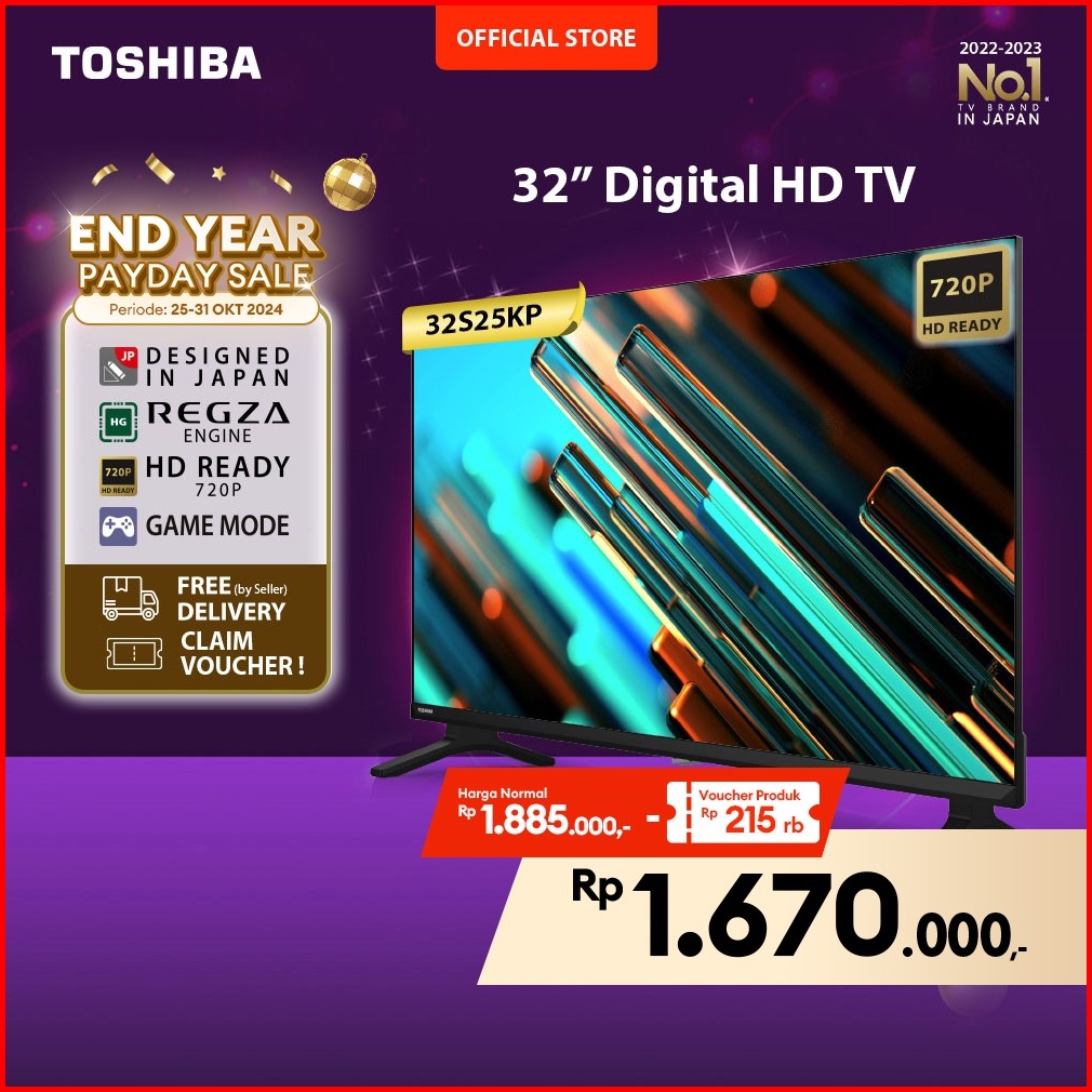 Free Ongkir Jabodetabek Toshiba Tv 32 Hd Digital Tv - Dolby Audio Regza Game Mode Hdmi Usb - 32s25kp