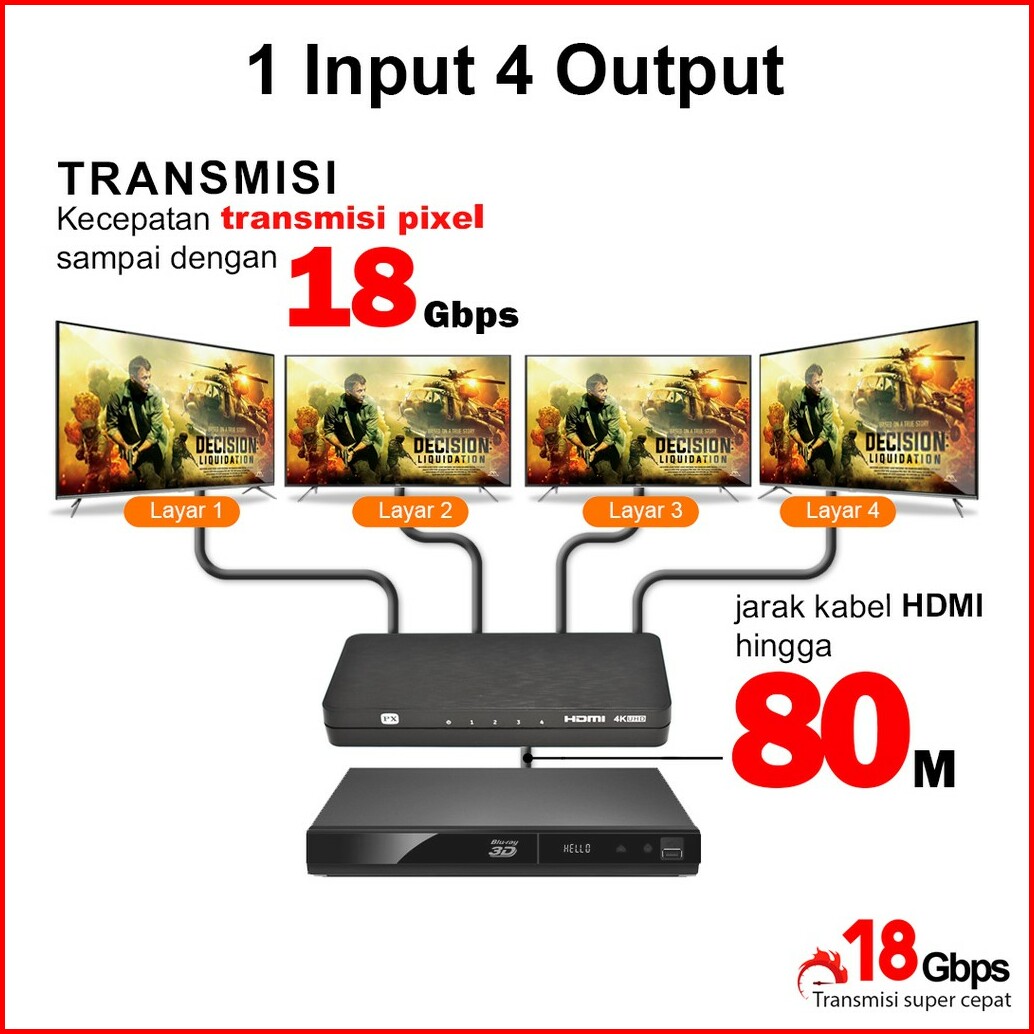 Hdmi Splitter 1 Input 4 Output Video Hd 4k Hdr 2.0 Pxhd2-141