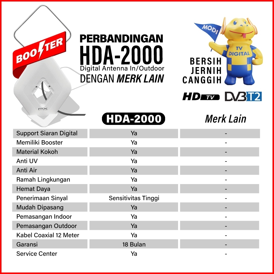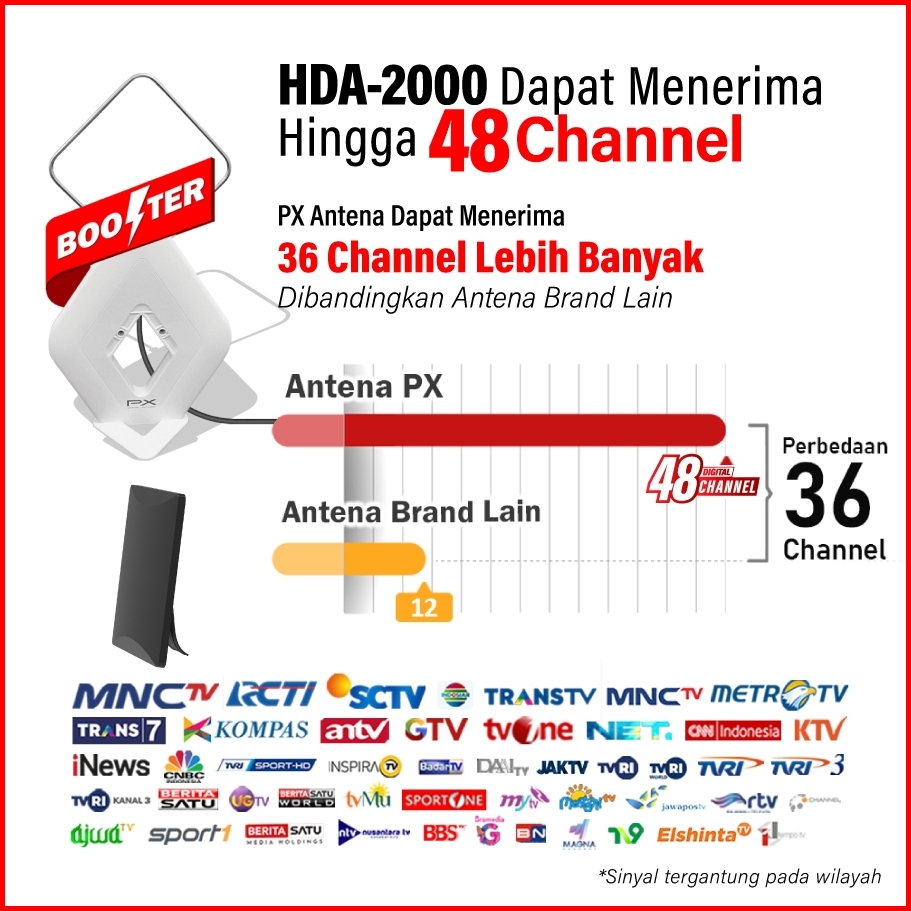 Antena Tv Digital Analog Dvb-t2 4k High Gain 25-db Px Hda-2000