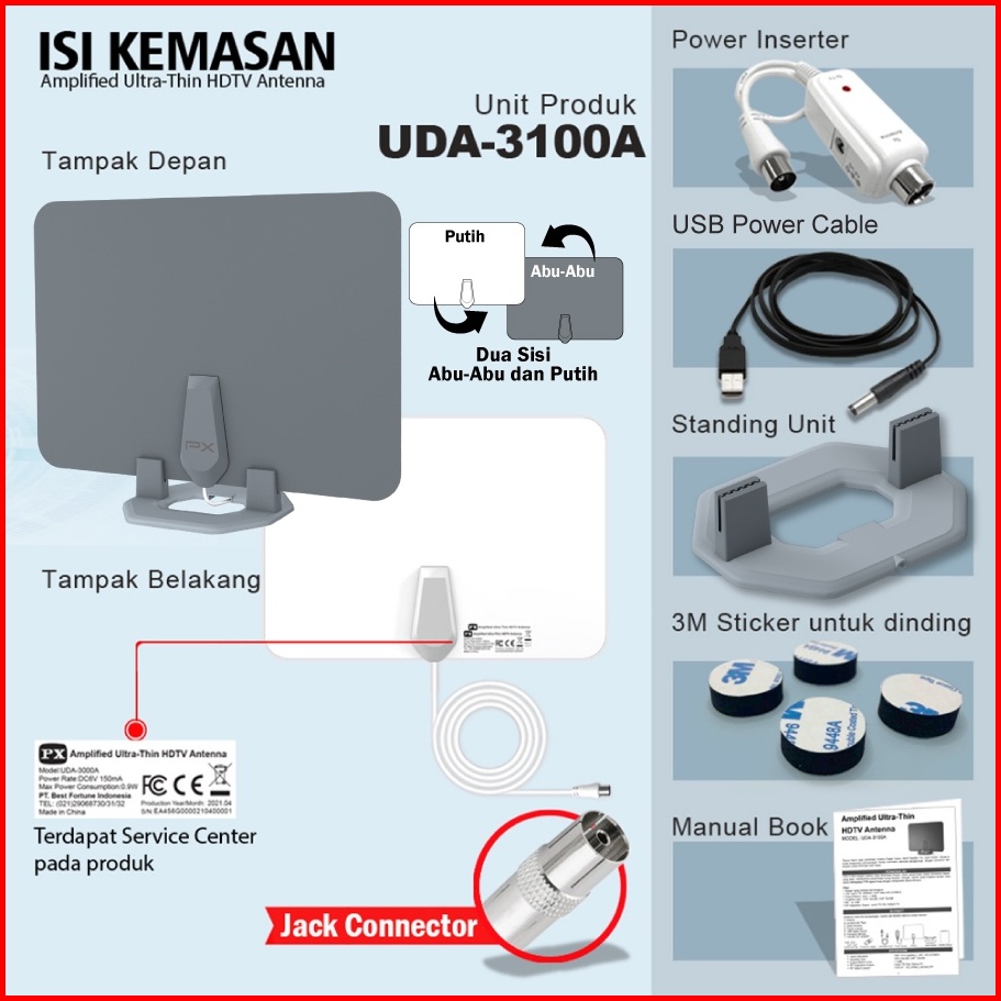 Antena Tv Dinding Digital Analog Indoor Dvbt2 Booster Px Uda-3100a