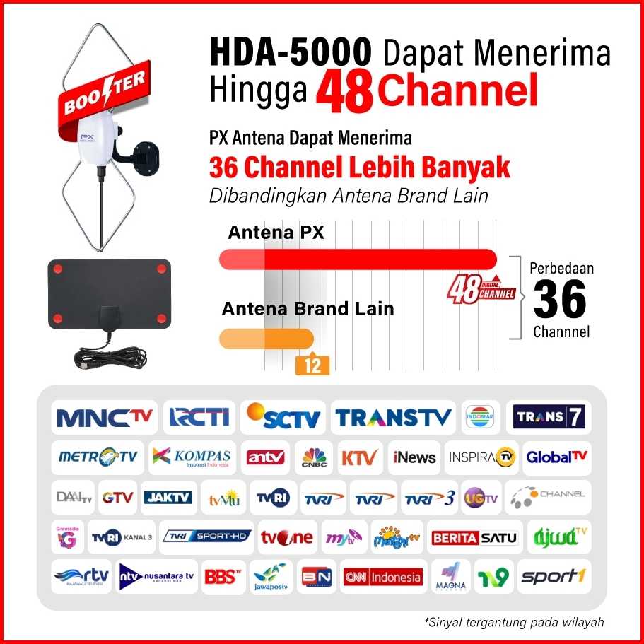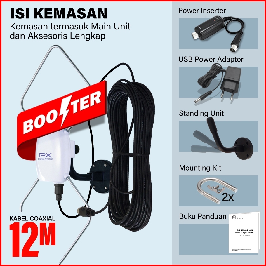 Antena Tv In Outdoor Px Hda-5000 Digital Tv Dvb-t2 Dengan Booster Dan Power Inserter