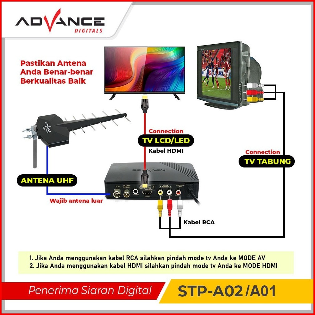 Advance Stb Set Top Box Tv Digital Receiver Penerima Siaran Full Hd Stb Wifi Bisa Youtube Dvb-t2 Stp A01 A02 I Garansi 1