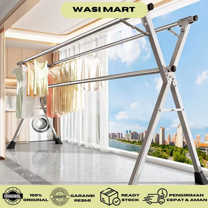 SUS 304 Jemuran Baju Lipat Stainless Steel Jemuran Pakaian Basah Tahan Karat Jemuran Pakaian Outdoor / Indoor