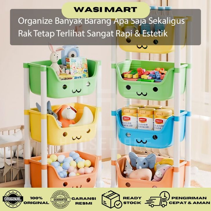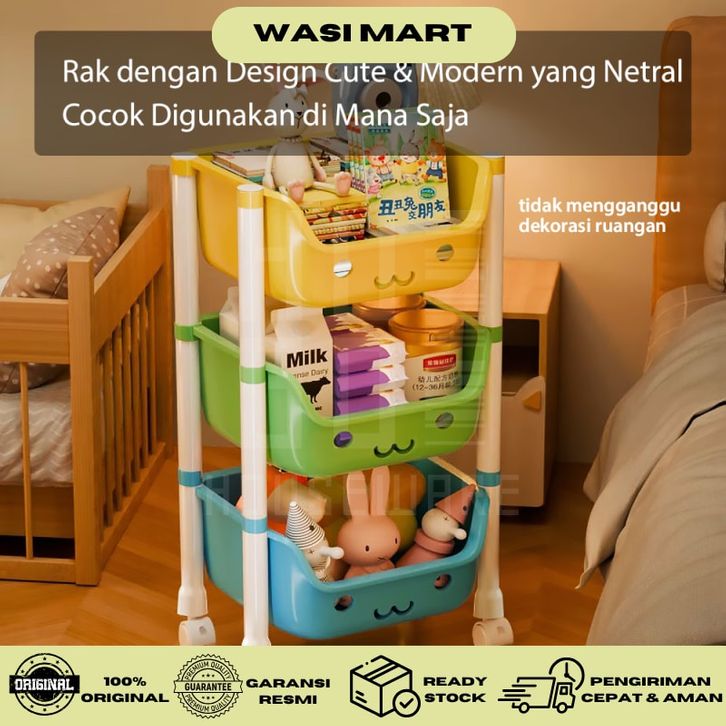 HUGO Rak Troli Susun Macaron Rak Dapur Serbaguna Rak Mainan Anak Pastel Rak Penyimpanan Buku Serbaguna dengan Roda