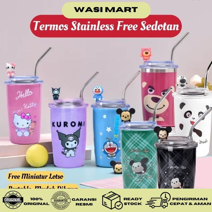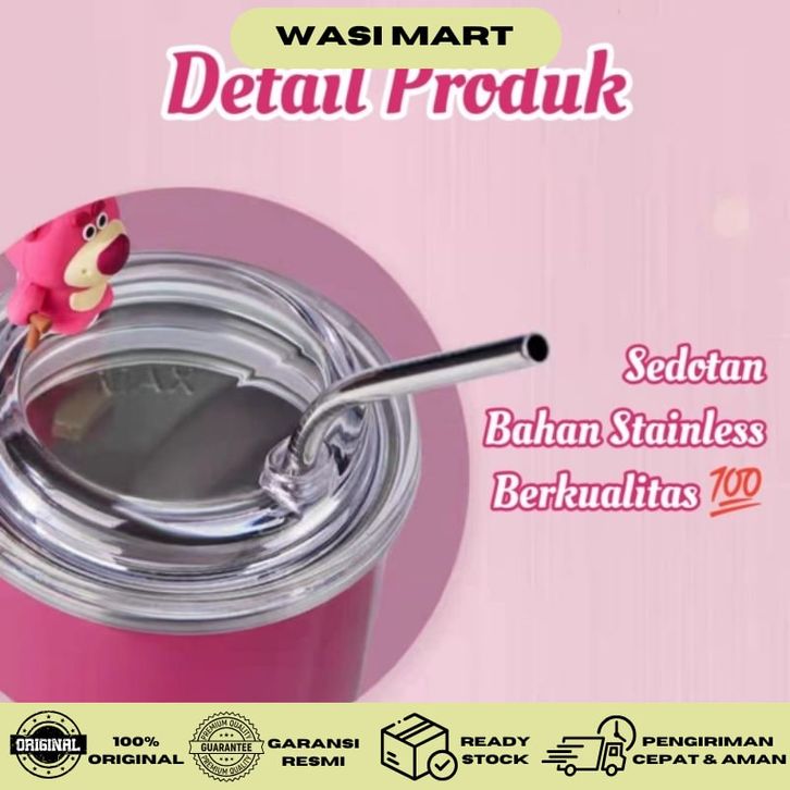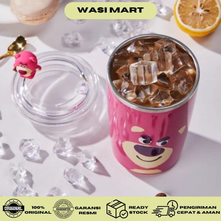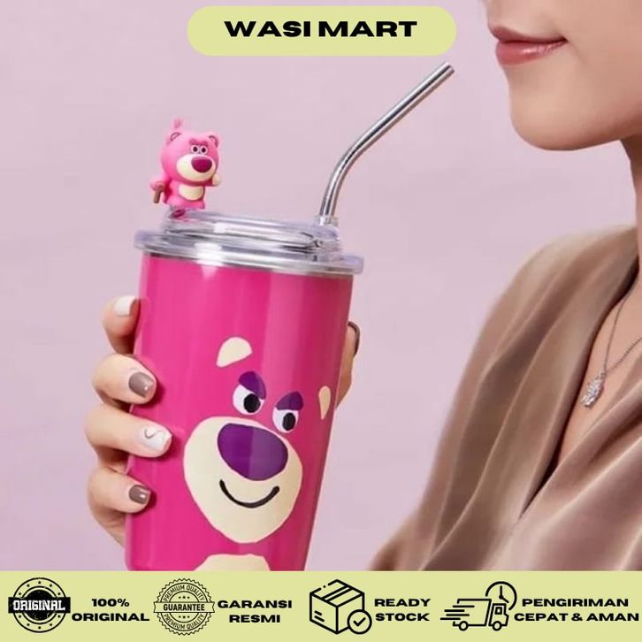 Tumbler Lotso Botol Dengan Sedotan / Botol Lucu Strawberry Bear Termos 303 Stainless Steel / Botol Air Minum Lotso
