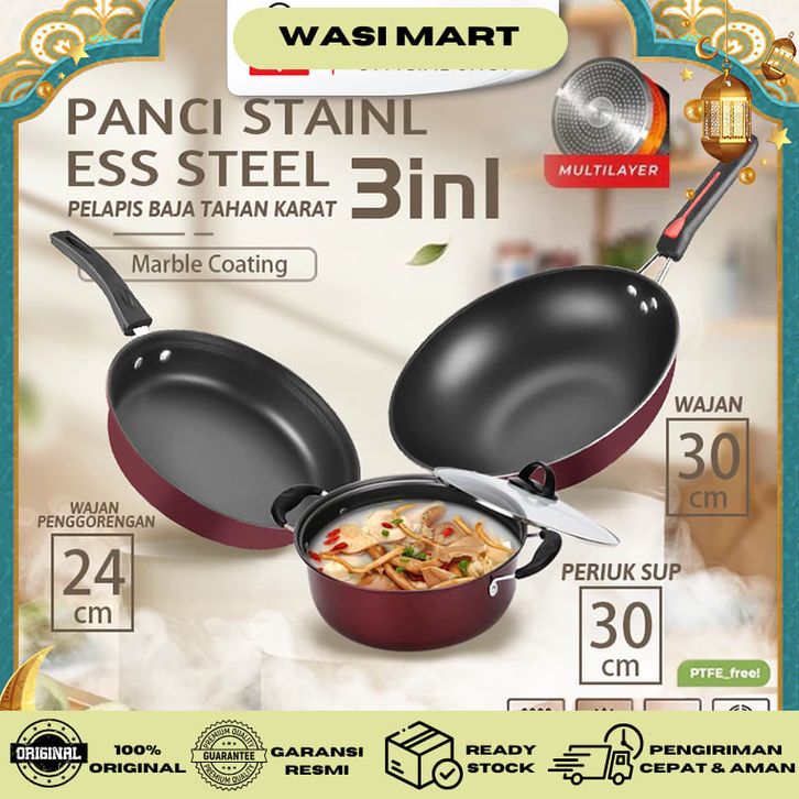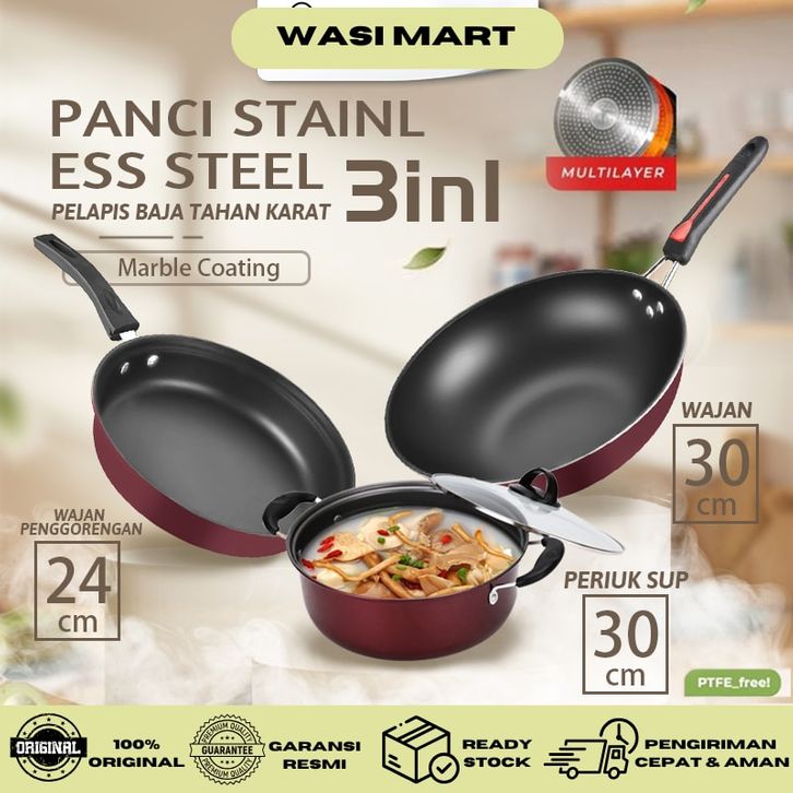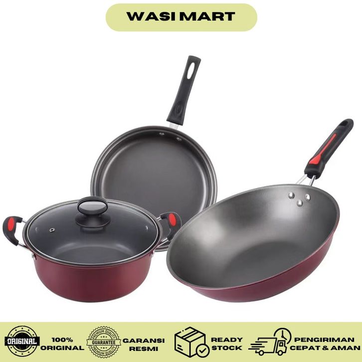 Veneco Panci Wajan Teflon Set Panci Teflon Penggorengan Set 3 Pcs Pans Pots
