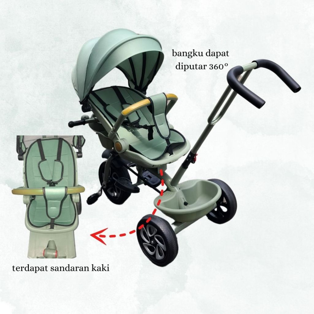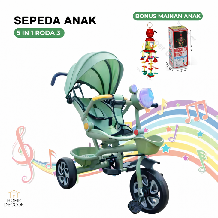 [Star]Sepeda Anak 5in1 Roda 3 Tricycle Bayi Roda Tiga Sepeda Stroller Dorong Tidur Duduk Lipat Musik Lampu