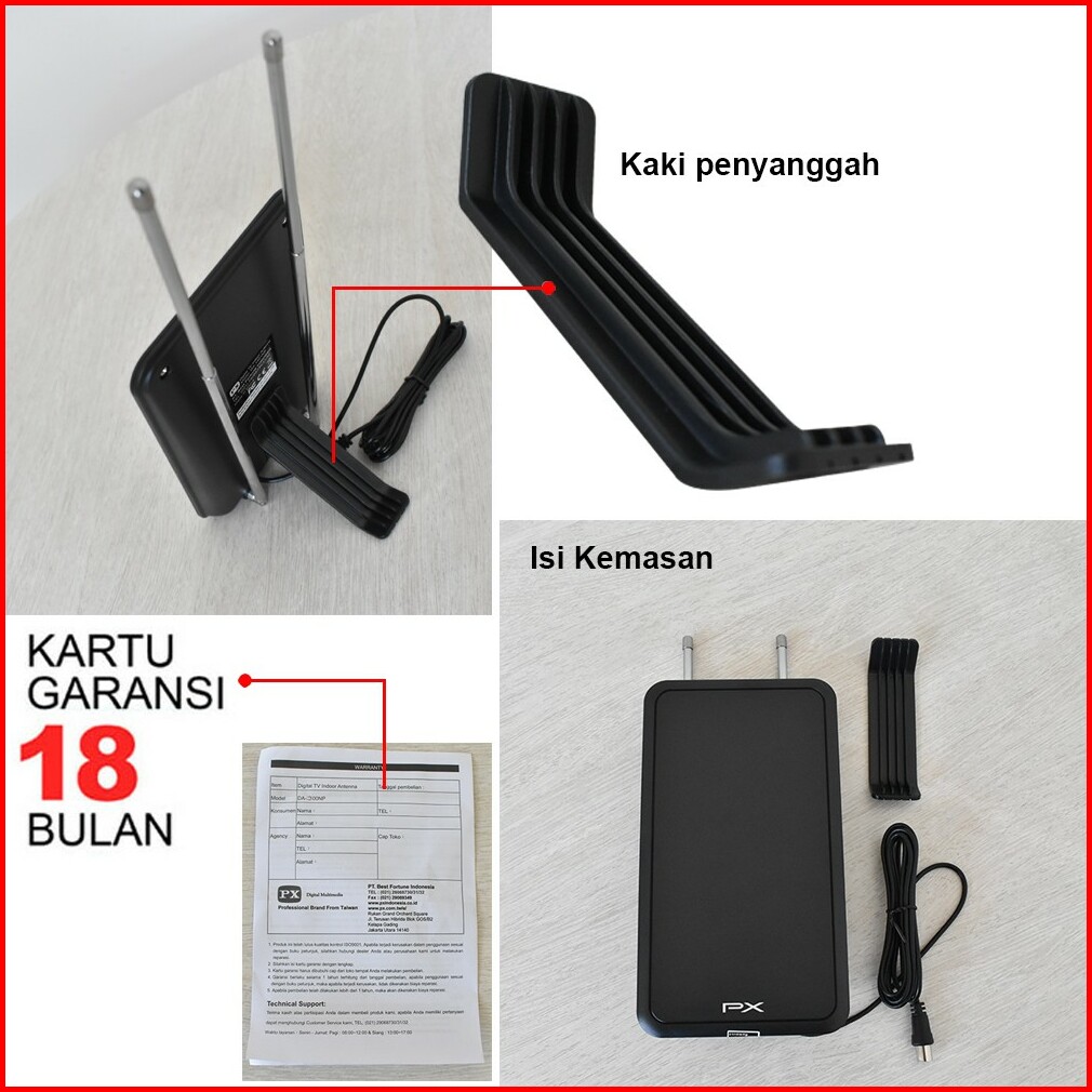 Antena Tv Indoor Px Da-1401np Digital Tv Dvb-t2 Dengan Kabel Coaxial Garansi 18 Bulan