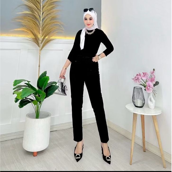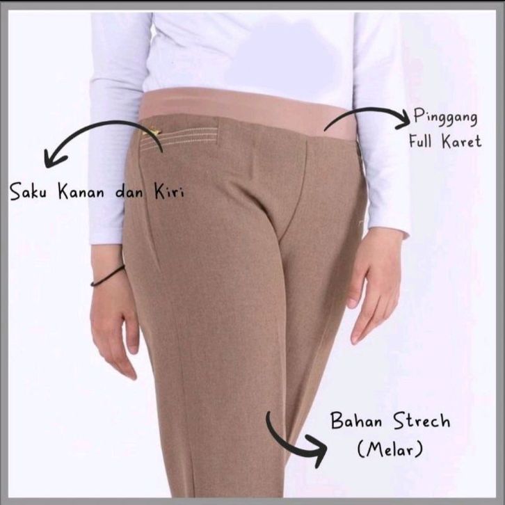 celana kerja WANITA JUMBO PINGGANG KARET kain wol impor premium HIGHWAIST