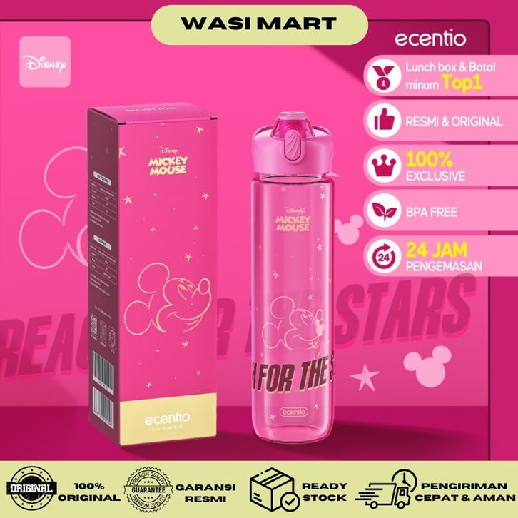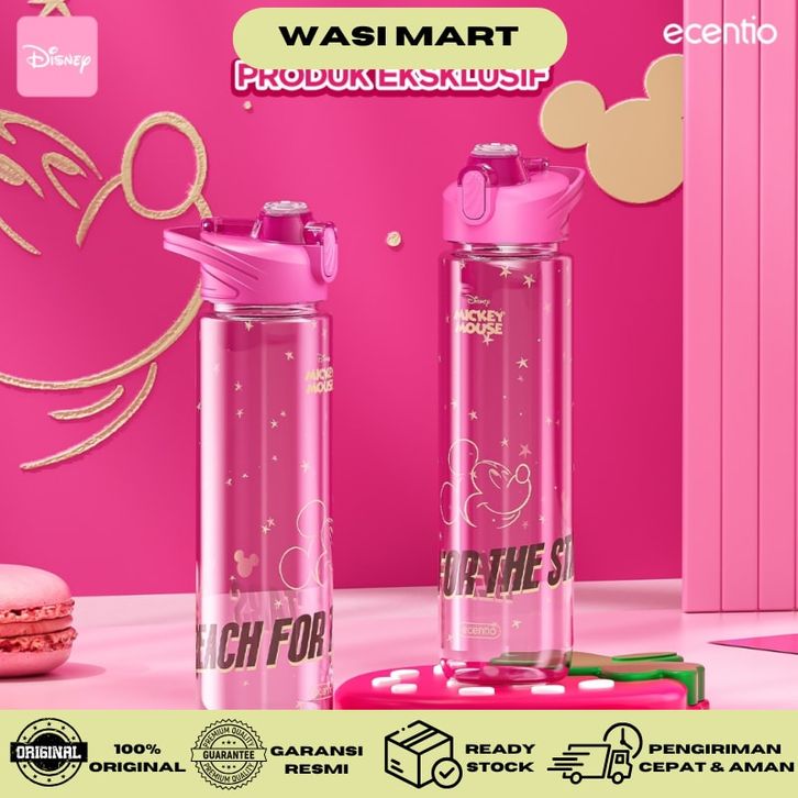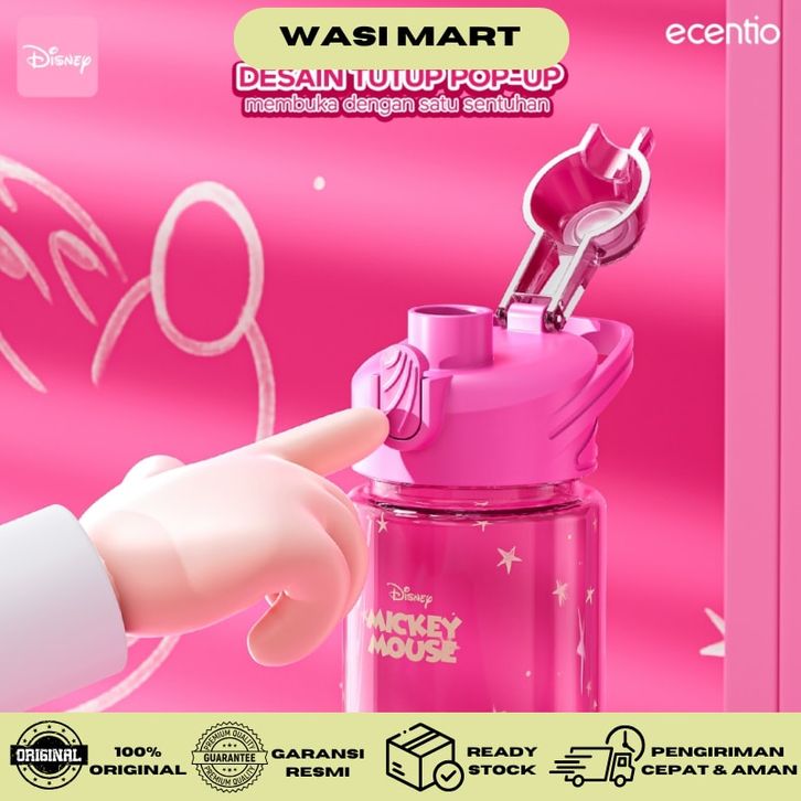 Ecentio Sport Botol Minum Disney Edition Mickey Mouse 1000ml Tumbler Minum Merah Muda Botol 1 Liter Plastik Anak Bpa
