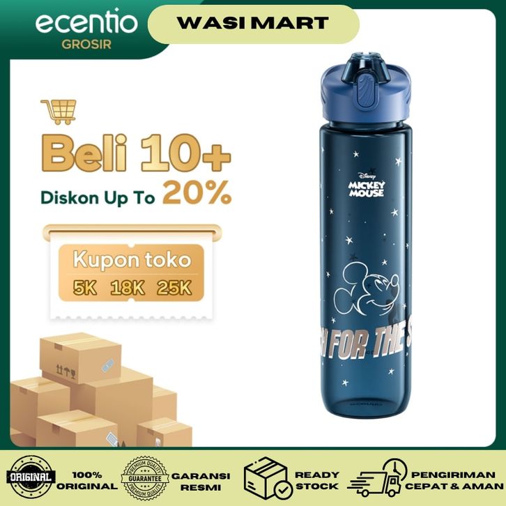 ecentio botol minum kado natal Disney Mickey blue 1000ml Portable Botol air Anak Sport 1 Liter with Lifting handle