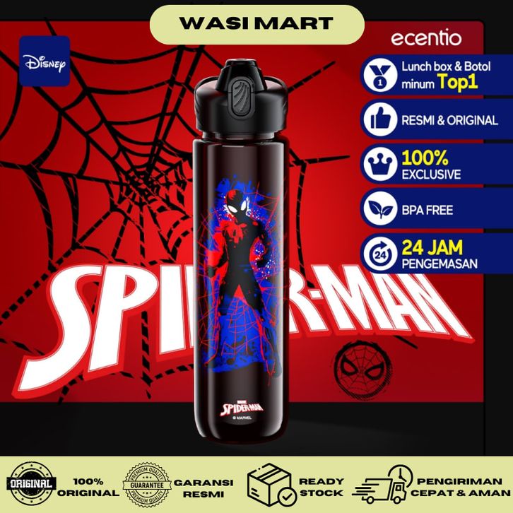 disney ecentio 1000ml Spiderman plastic botol minum anak portabel hitam disney series tumbler minum aesthetic anti