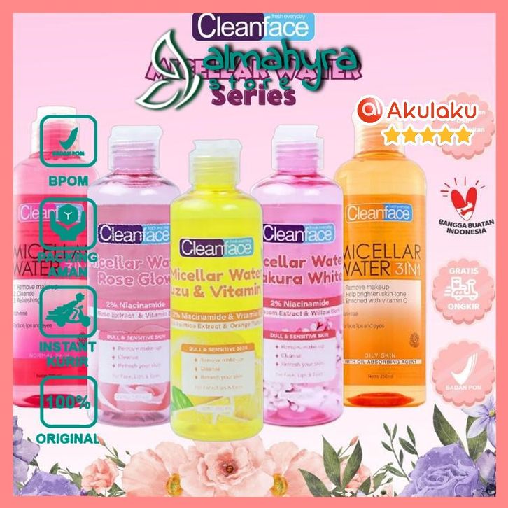 CLEANFACE Micellar Water 3IN1 / Pembersih Wajah / Pembersih Makeup Waterproof 250ml | 100ml / almahyra store / original