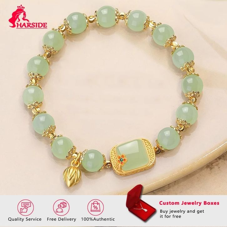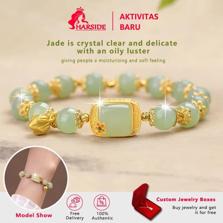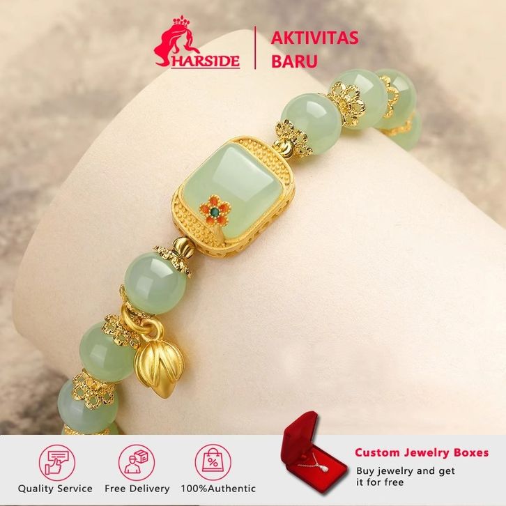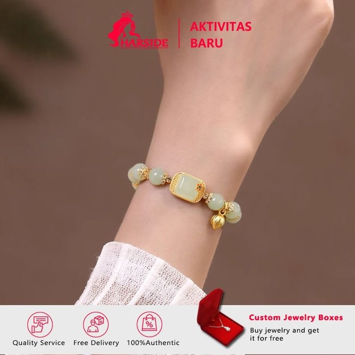 Harside Jewelry Gelang Wanita Gelang Manik-manik Aesthetic Crystal bracelet Simbul Keberuntungan giok Permata terbaru