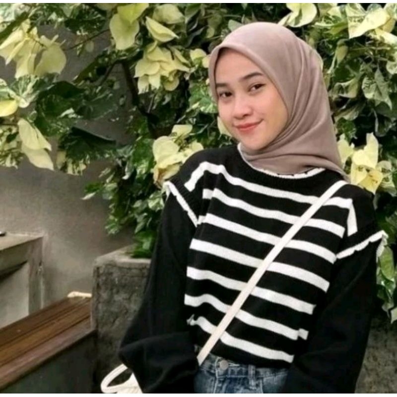 Atasan Knit Wanita Lengan Panjang Lengan Balon