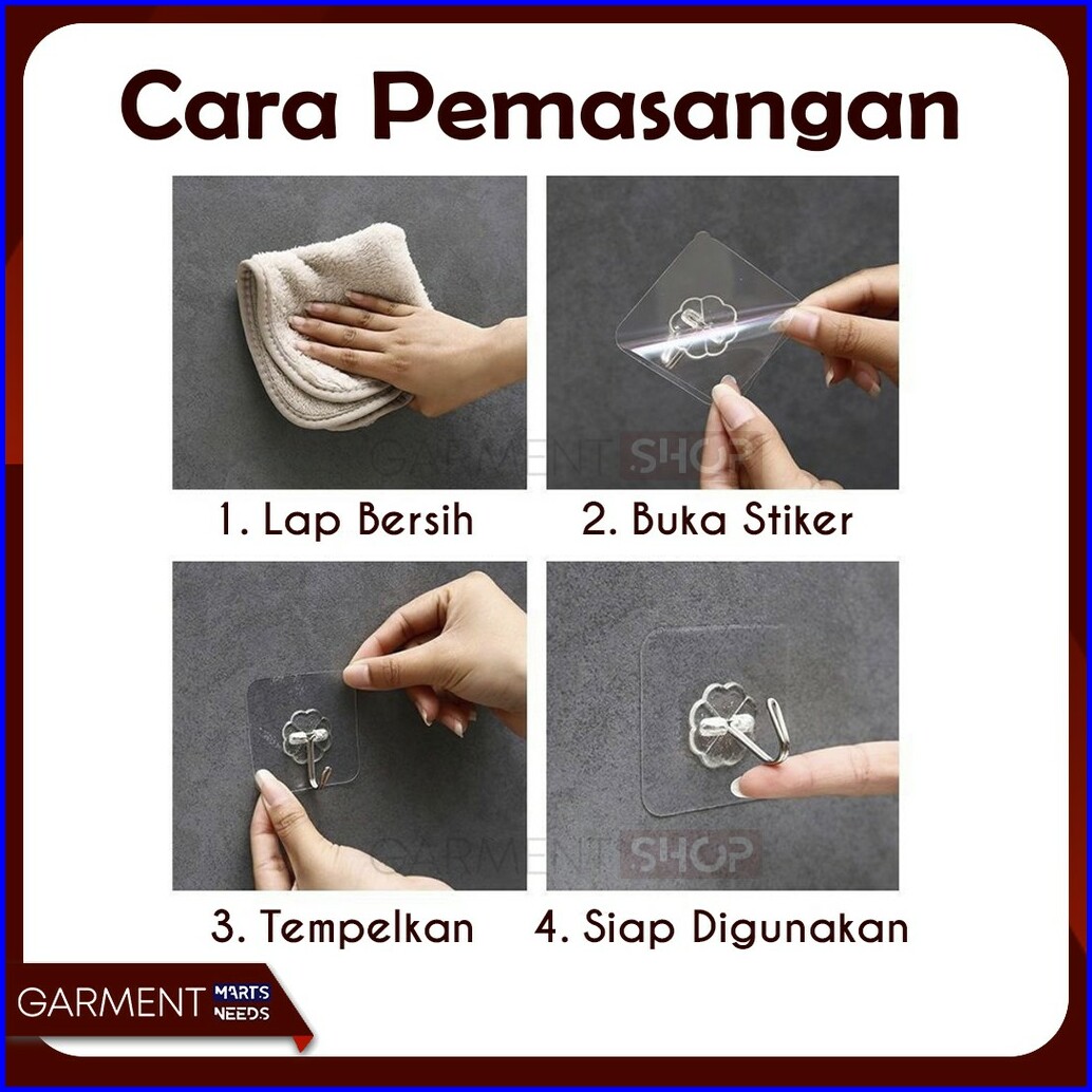 Gantungan Tempel Kaca Dinding Keramik Mebel Magic Hook Transparan